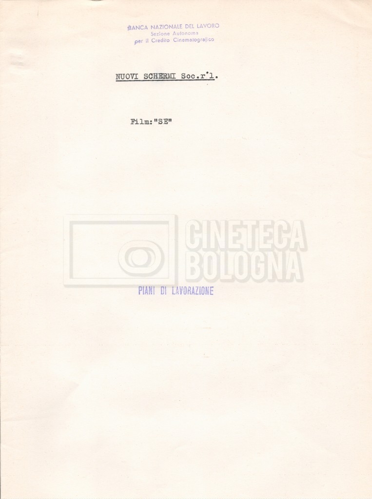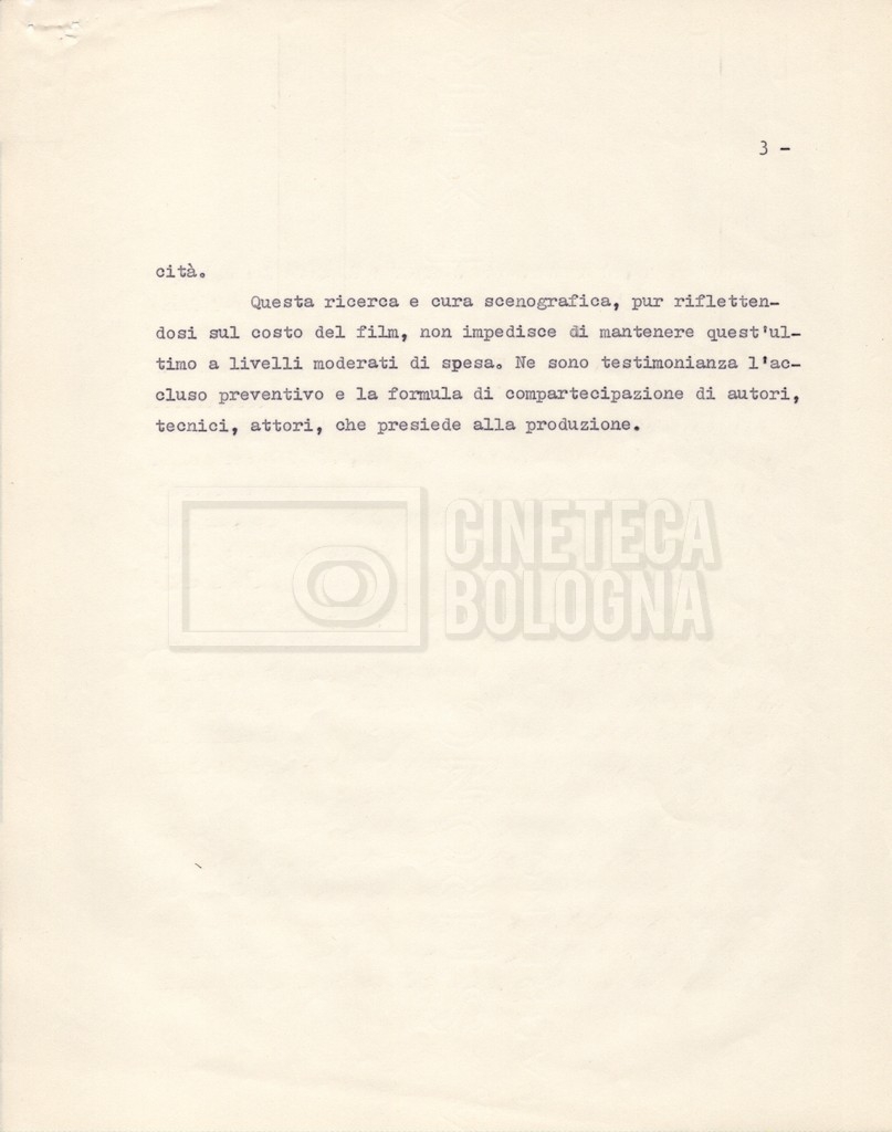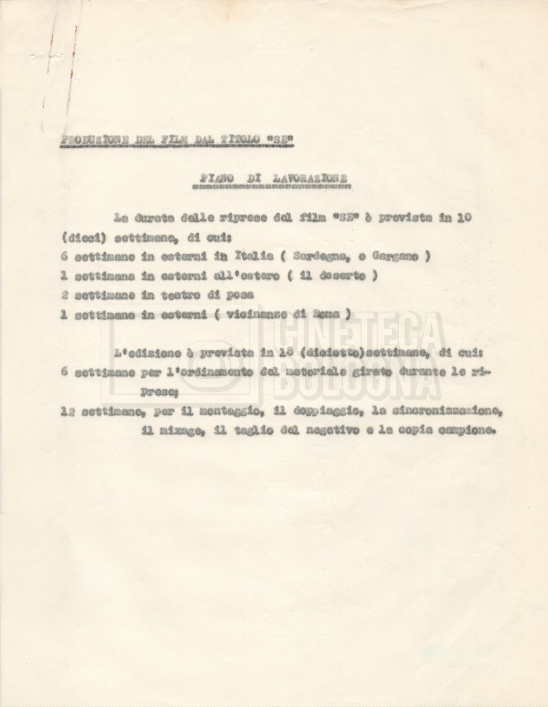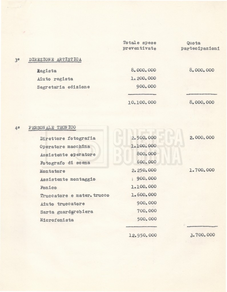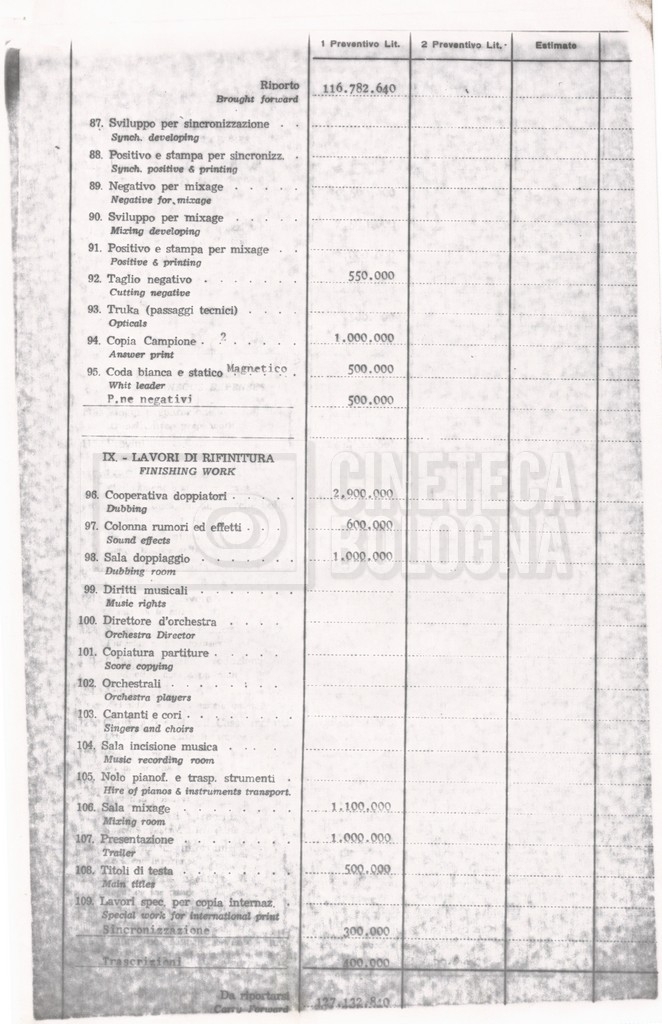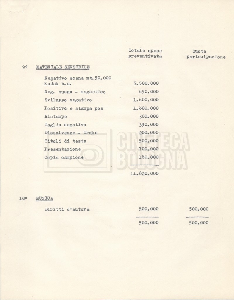 – ‘Documenti per la Banca Nazionale del Lavoro’: contiene elenchi di attori, autori e tecnici; il soggetto; il piano tecnico e artistico; i piani di lavorazione; un preventivo di costo; uno schema di contratto di cessione;