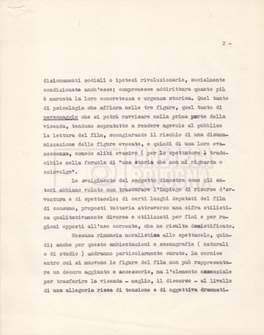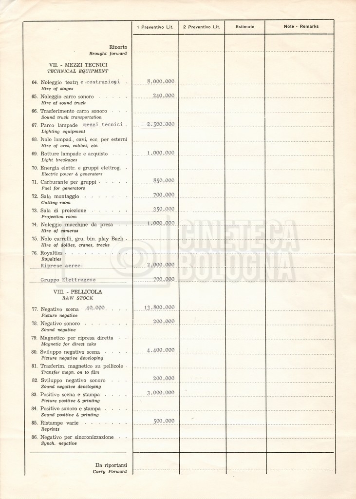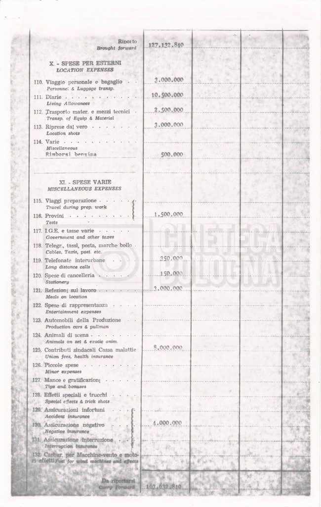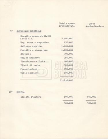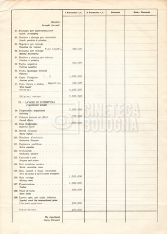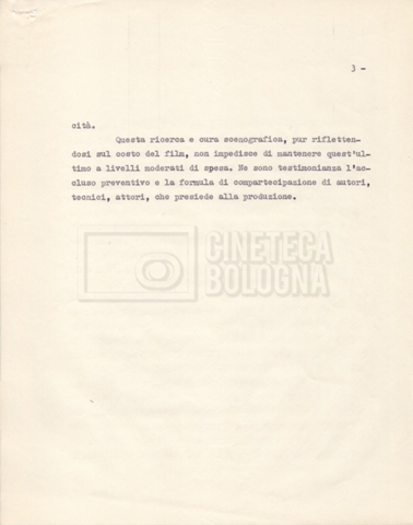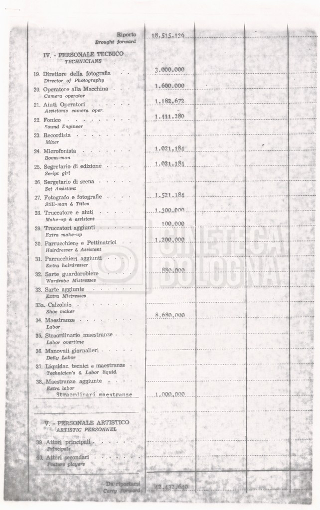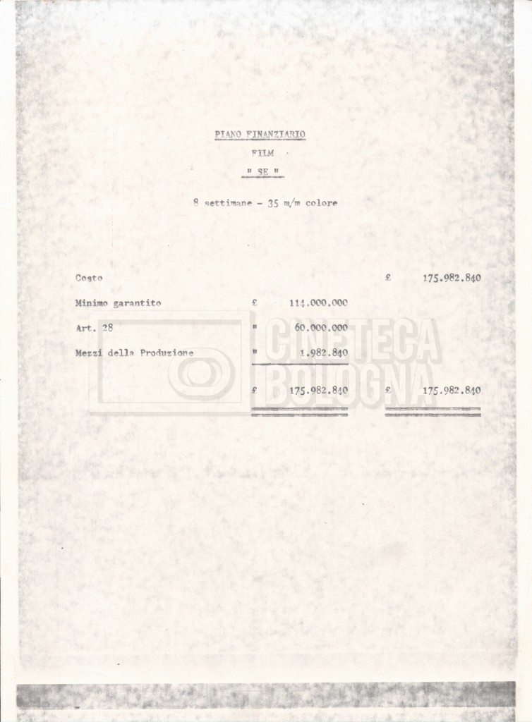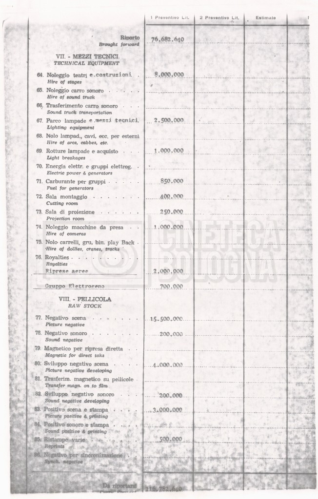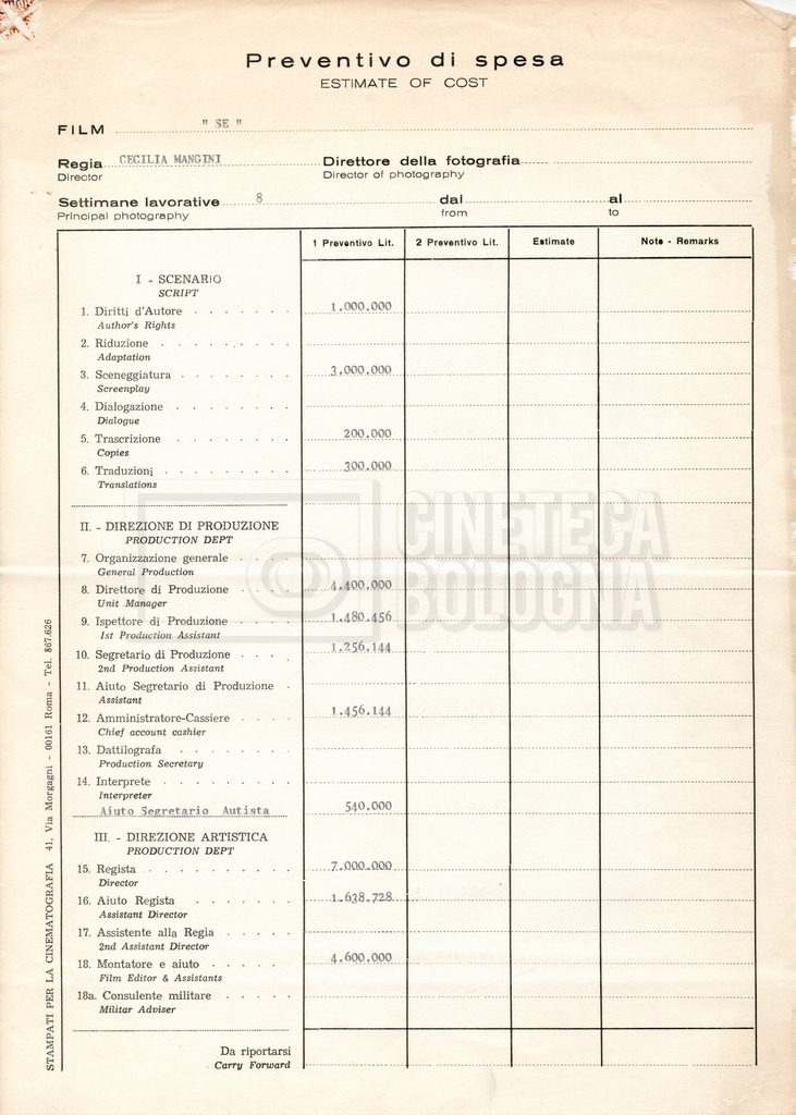 – ‘Documenti per la Banca Nazionale del Lavoro’: contiene elenchi di attori, autori e tecnici; il soggetto; il piano tecnico e artistico; i piani di lavorazione; un preventivo di costo; uno schema di contratto di cessione;