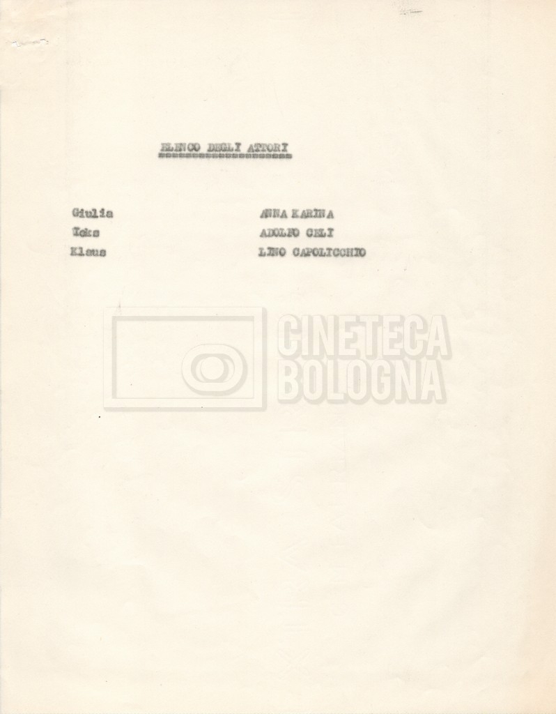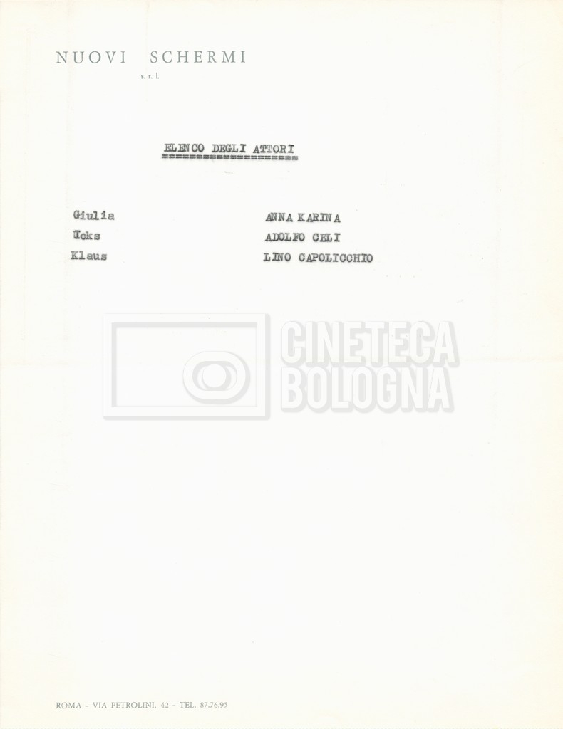 – Un elenco degli attori con una relazione al ‘Ministero dello Spettacolo’;