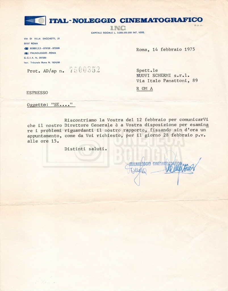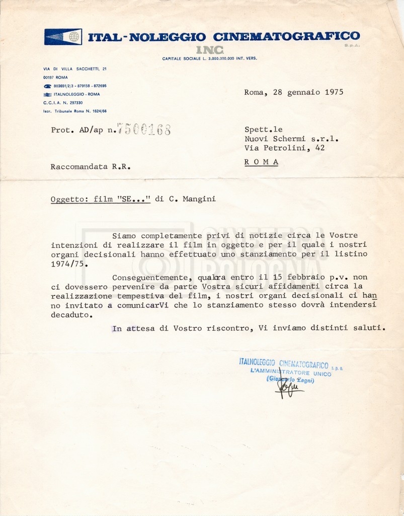 – Una richiesta di notizie da parte della ‘Italnoleggio’.