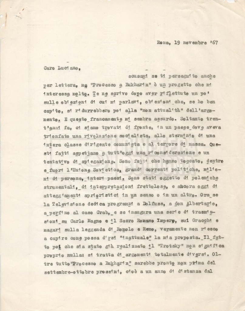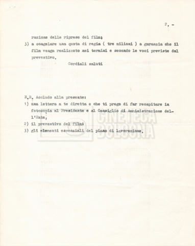 – Una lettera inviata a tale Luciano in cui si parla del progetto;