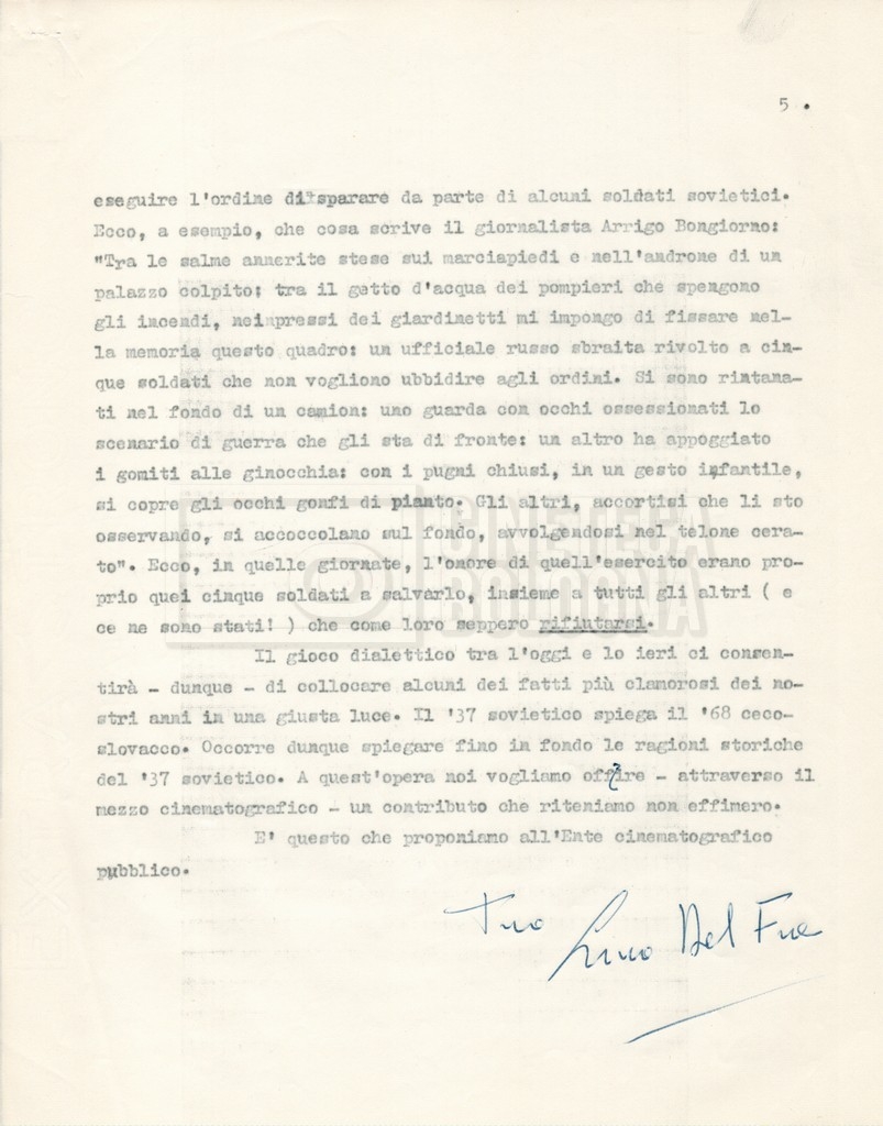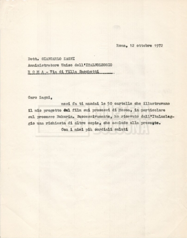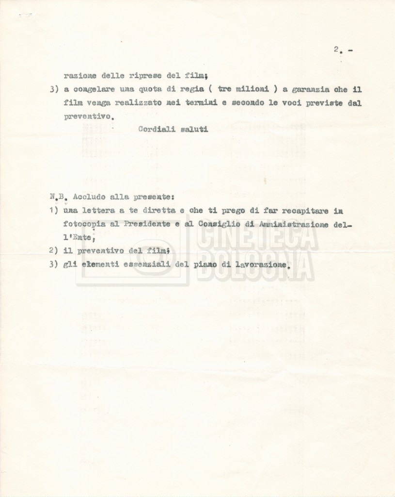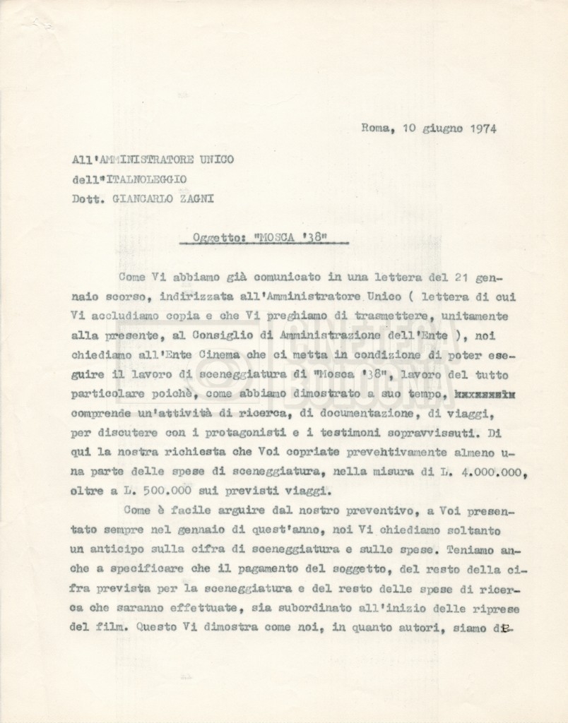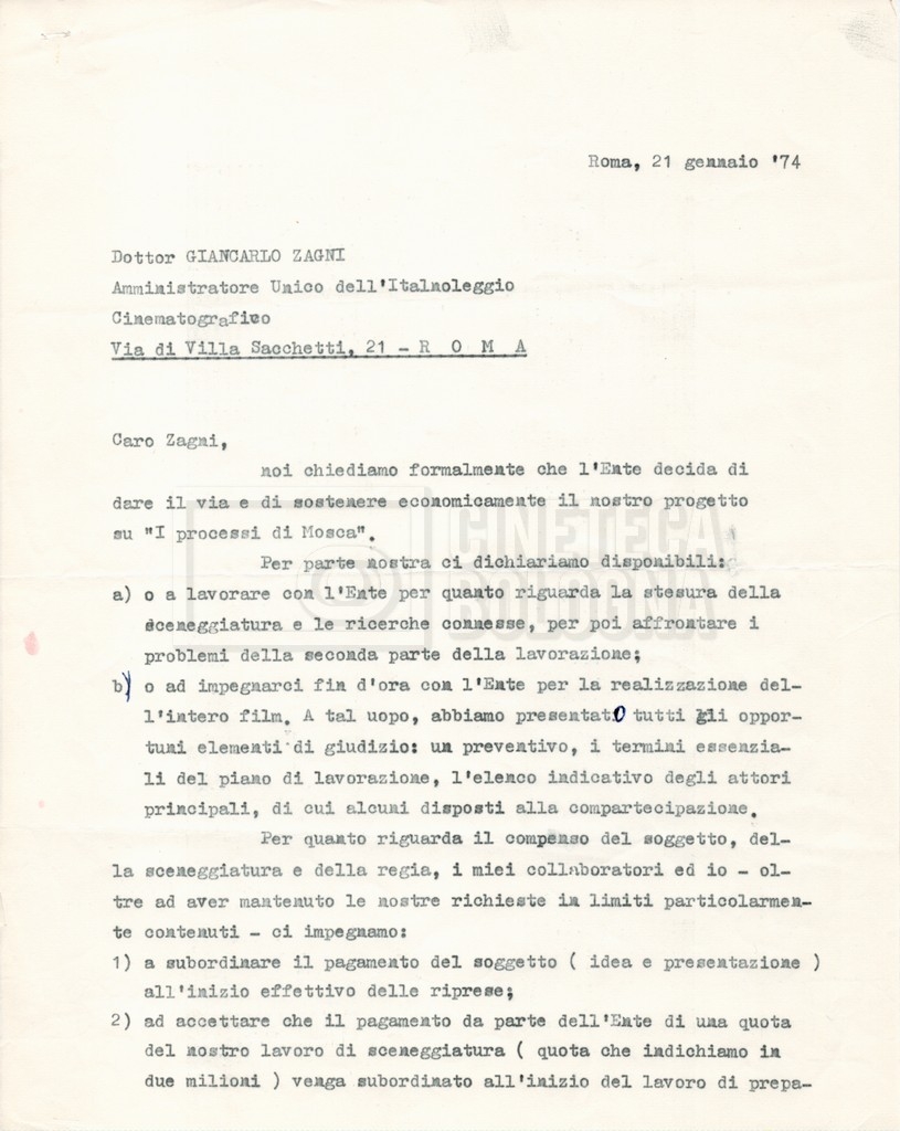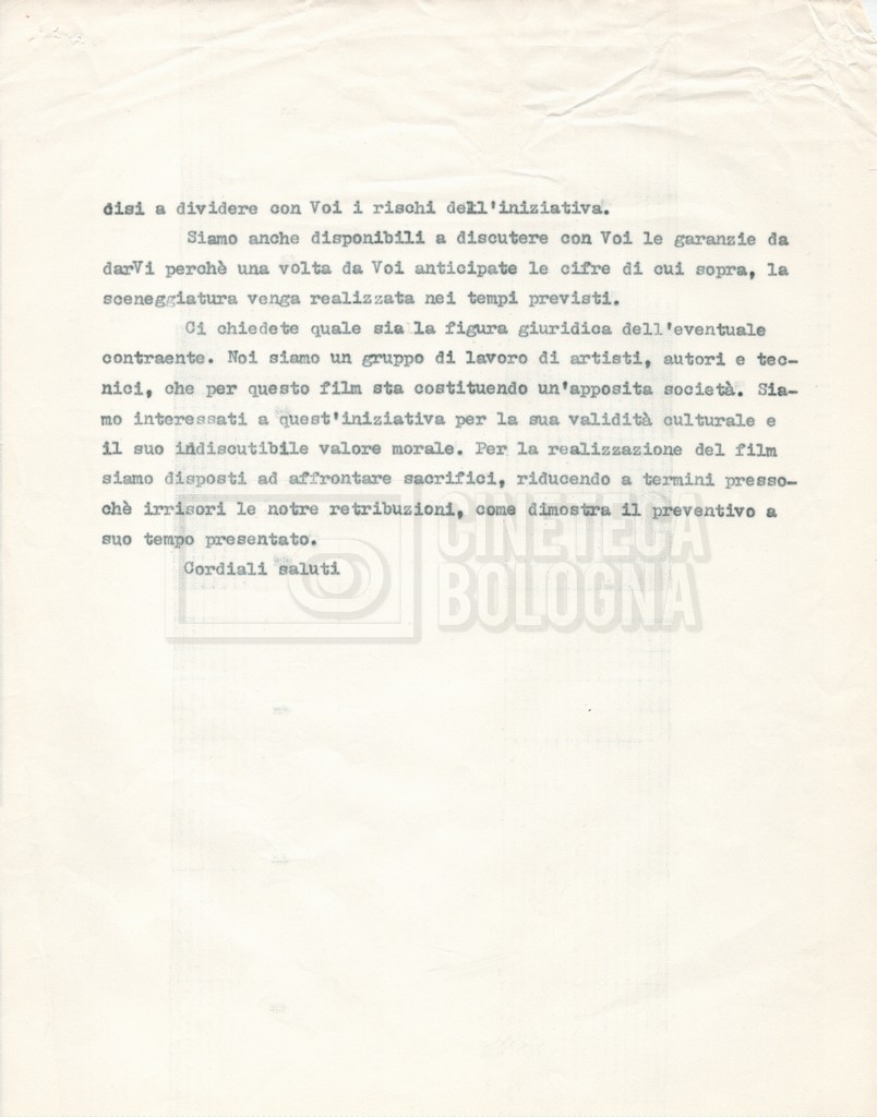 – Corrispondenza tra Zagni, direttore della ‘Italnoleggio’, e Lino Del Fra, riguardante una prima versione del progetto;