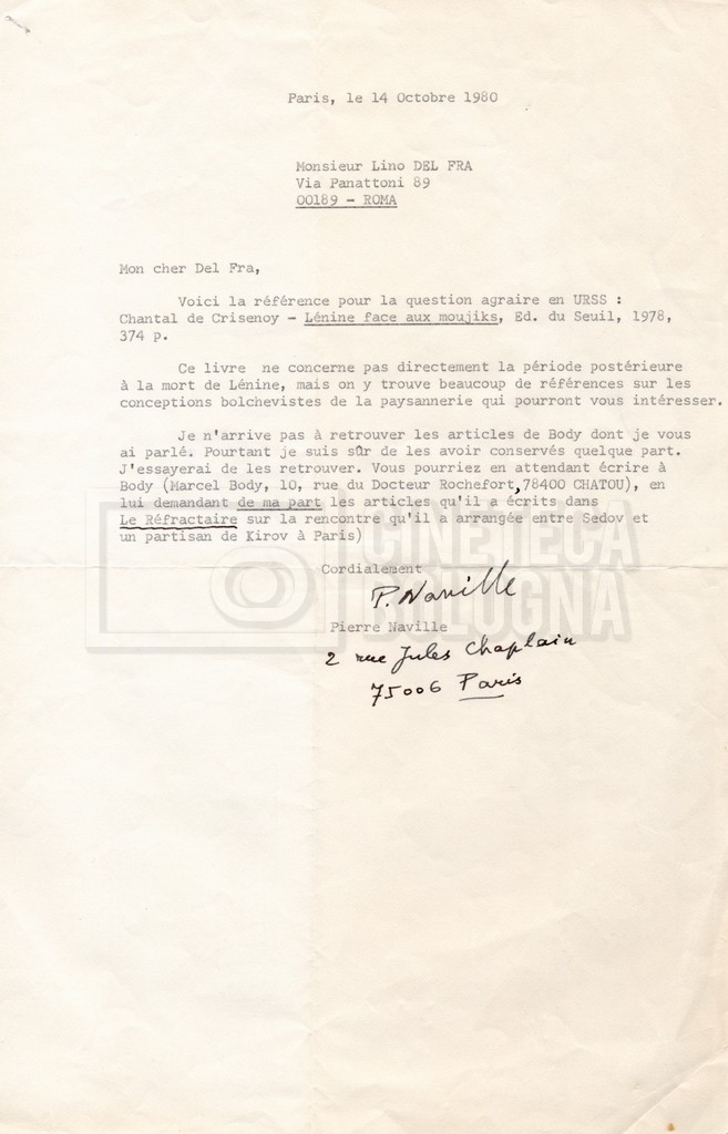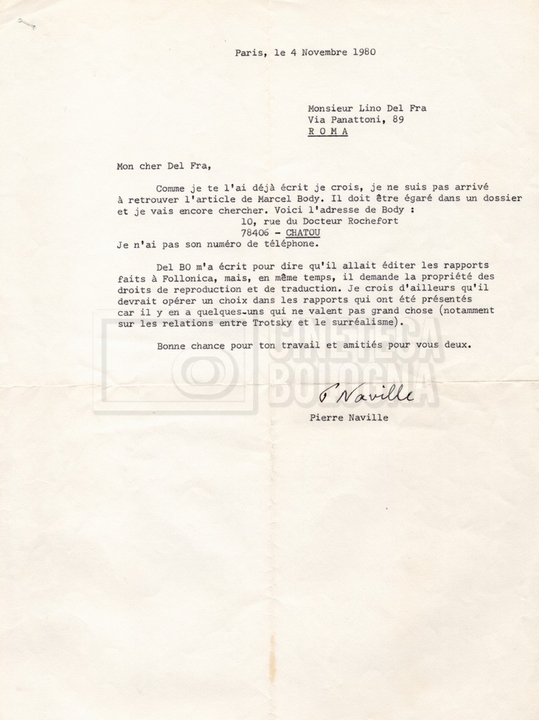 – Corrispondenza fra Pierre Naville e Lino Del Fra;
