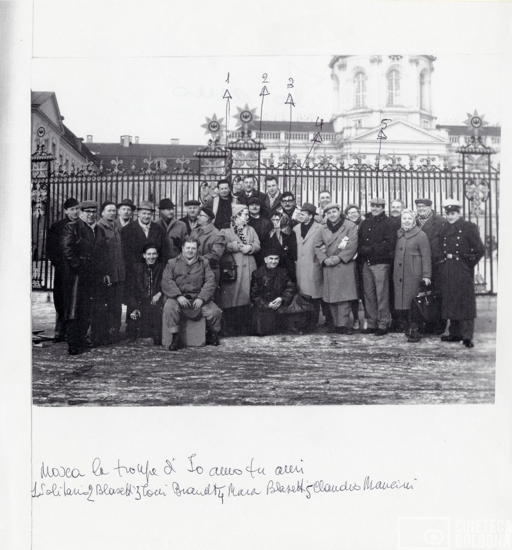 Mosca. Piazza Rossa. Francesco Solitario, Alessandro Blasetti, Tony Brandt, Mara Blasetti, Claudio Mancini e la troupe del film Io amo, tu ami…