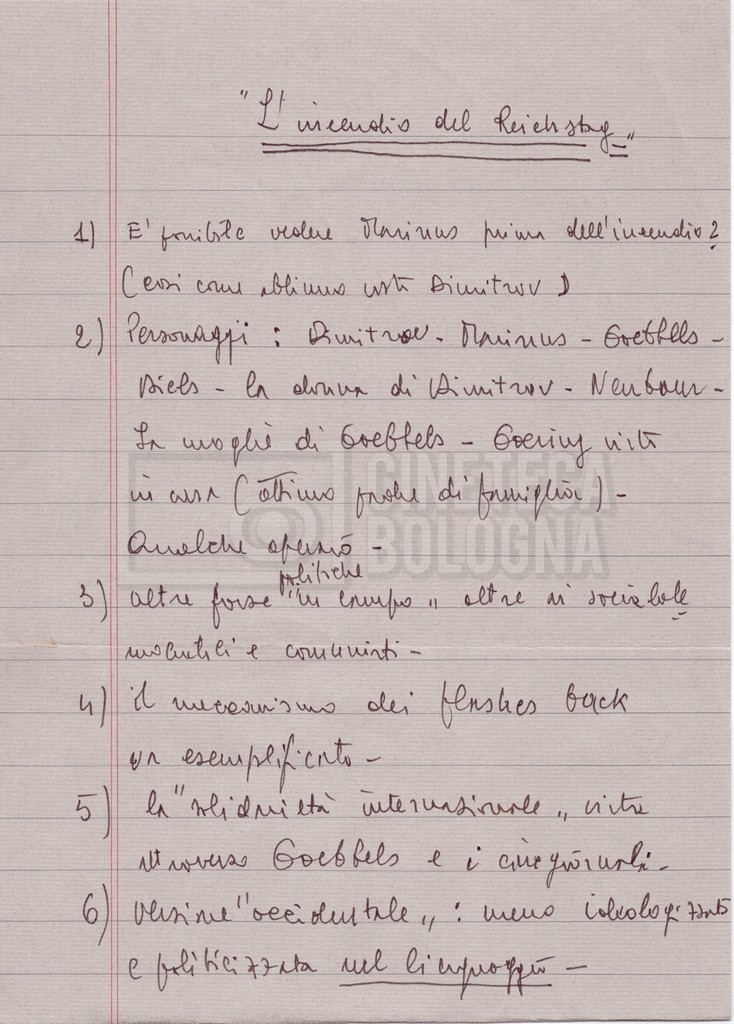 “Appunti su personaggi; Marinus Van Der Lubbe; Dimitrov; Hitler; Goering; Goebbels; Neubauer”