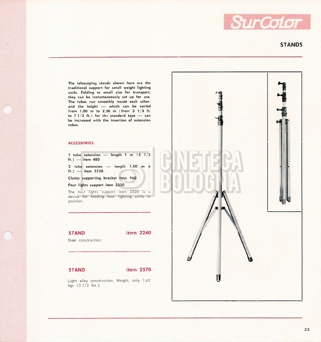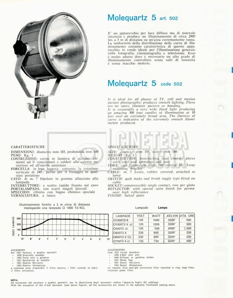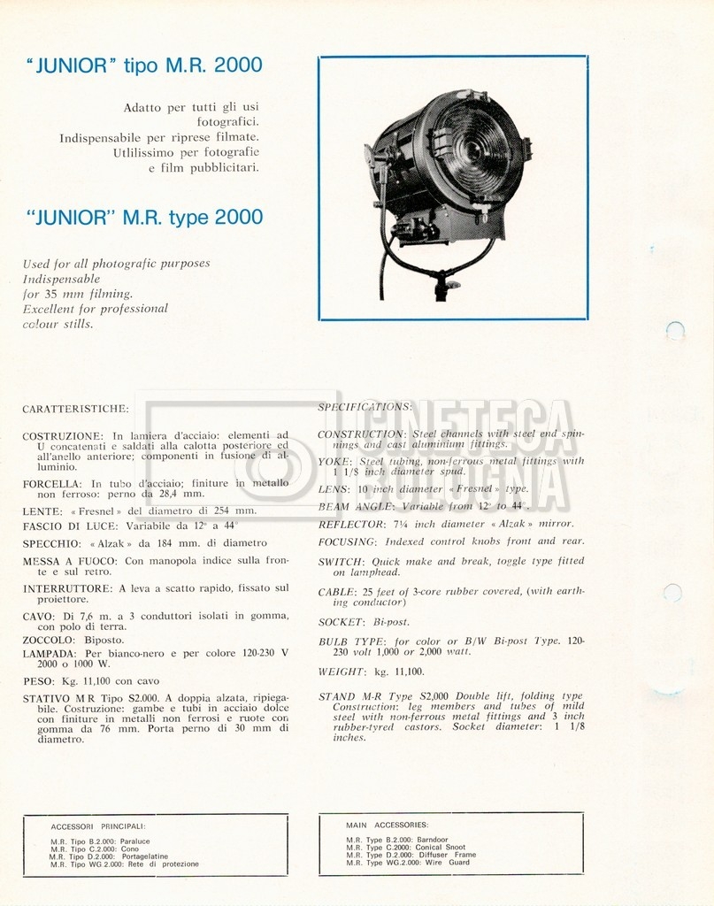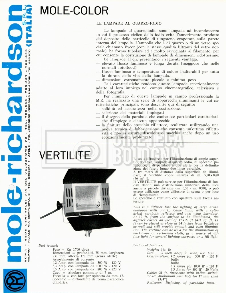 – Un listino illustrato ‘Mole-Richardson’ di attrezzature per cinema, televisione e fotografia;