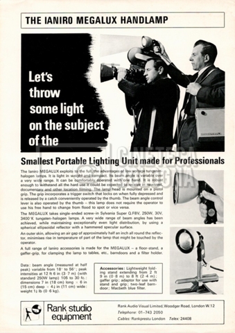 – Due opuscoli della ‘Rank film equipment’ riguardanti specialmente il reparto luci;