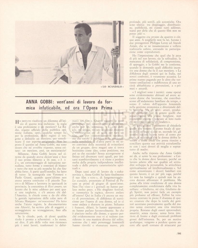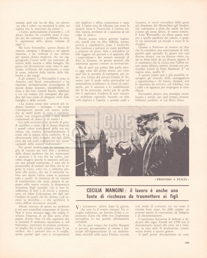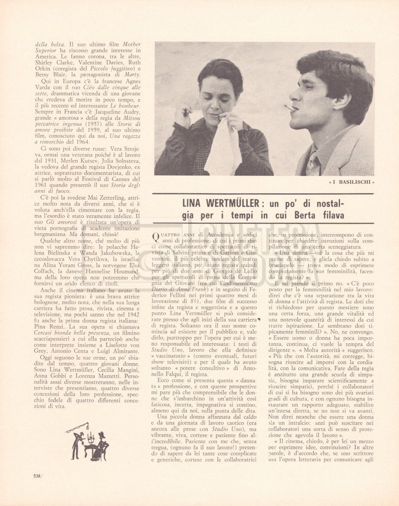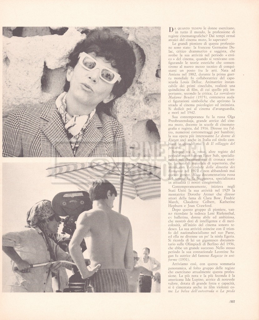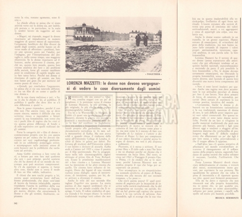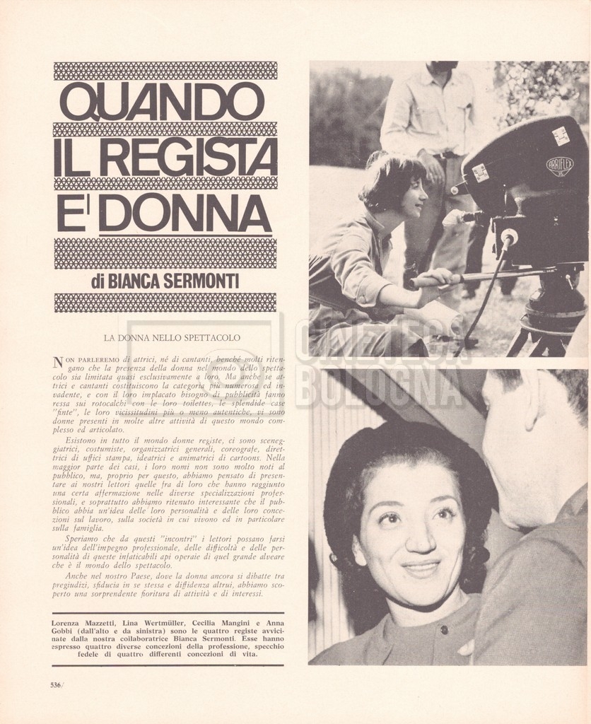 – “Rivista del cinematografo”, a. XXXIX, agosto 1966, n. 8 (Si segnala un contributo di Bianca Sermonti dal titolo Quando il regista è donna, con interviste a: Lina Wertmüller, Cecilia Mangini, Anna Gobbi e Lorenza Mazzetti);