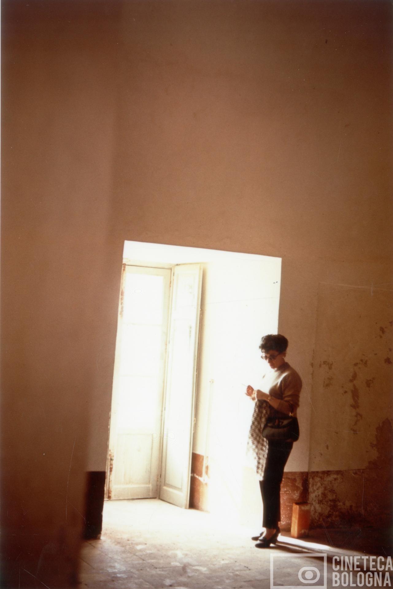 Portopalo di Capo Passero. Mara Blasetti all’interno del Castello Tafuri durante i sopralluoghi del film Modesty Blaise
