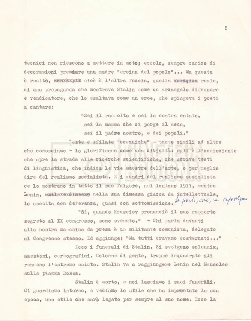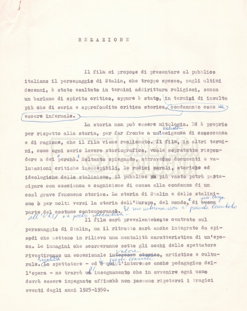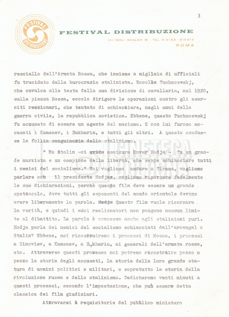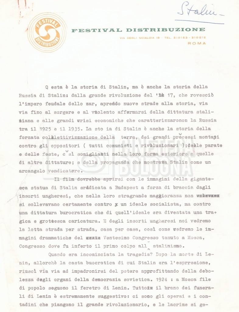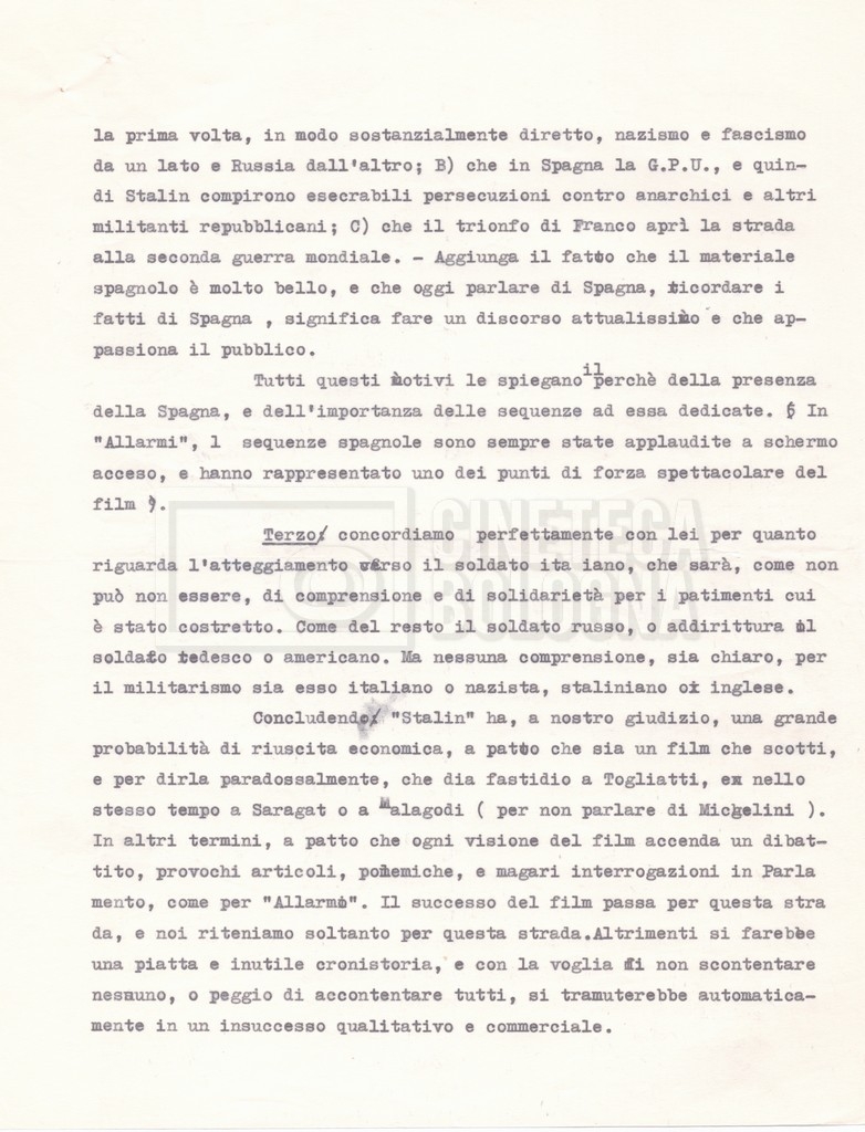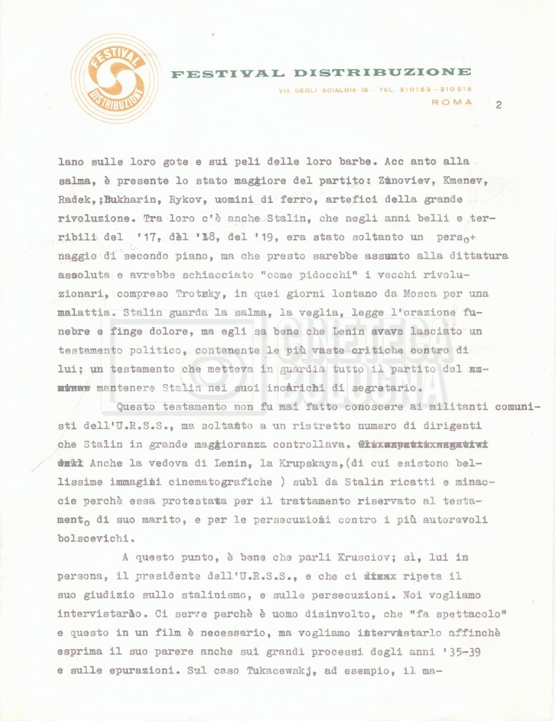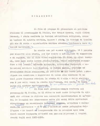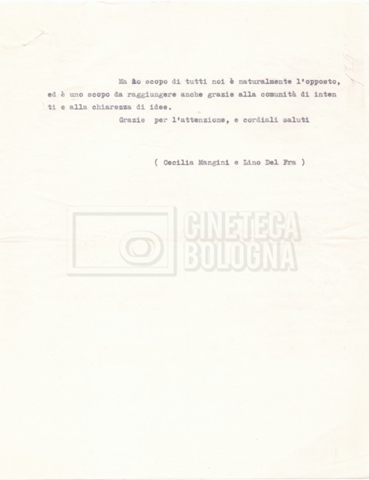 – Una lettera da Cecilia Mangini e Lino Del Fra a Pennacchi Filiberto, rappresentante della ‘Olympic Cinematografica’ di Roma, e la lettera di risposta di quest’ultimo, riguardanti i temi da trattare nel film e il modo in cui trattarli.