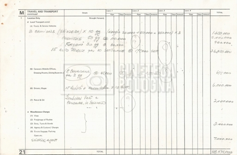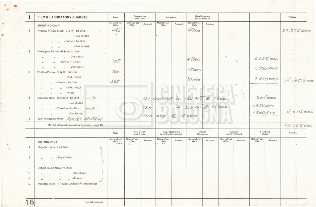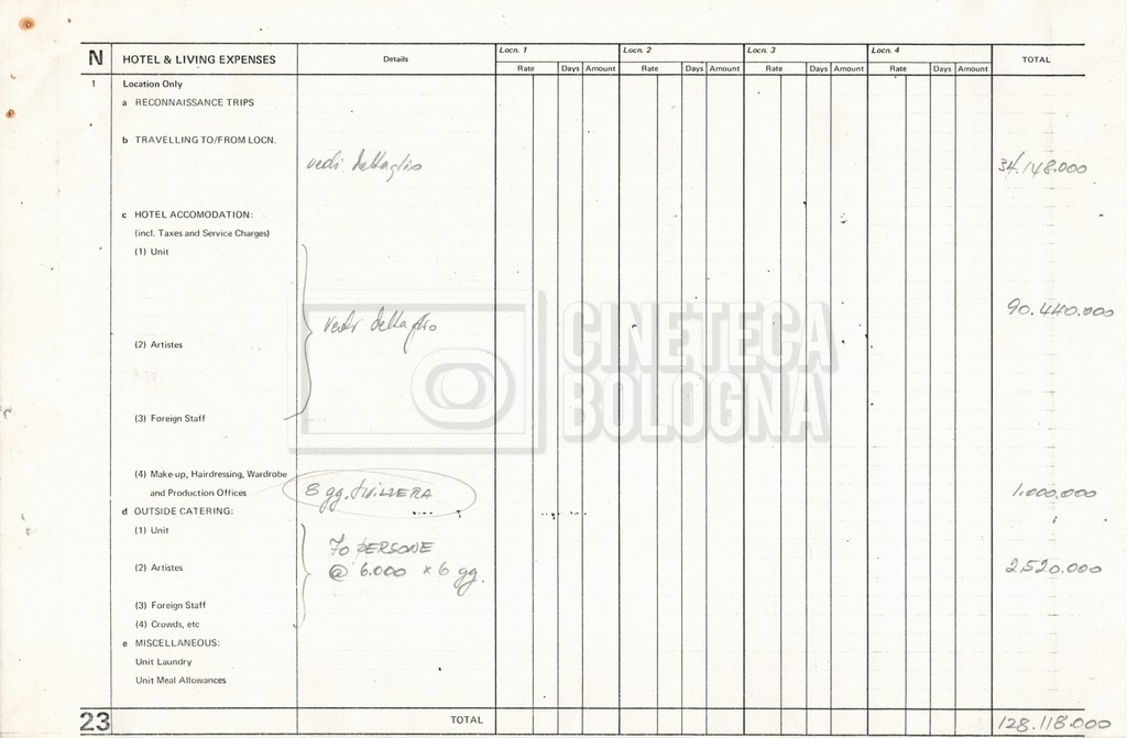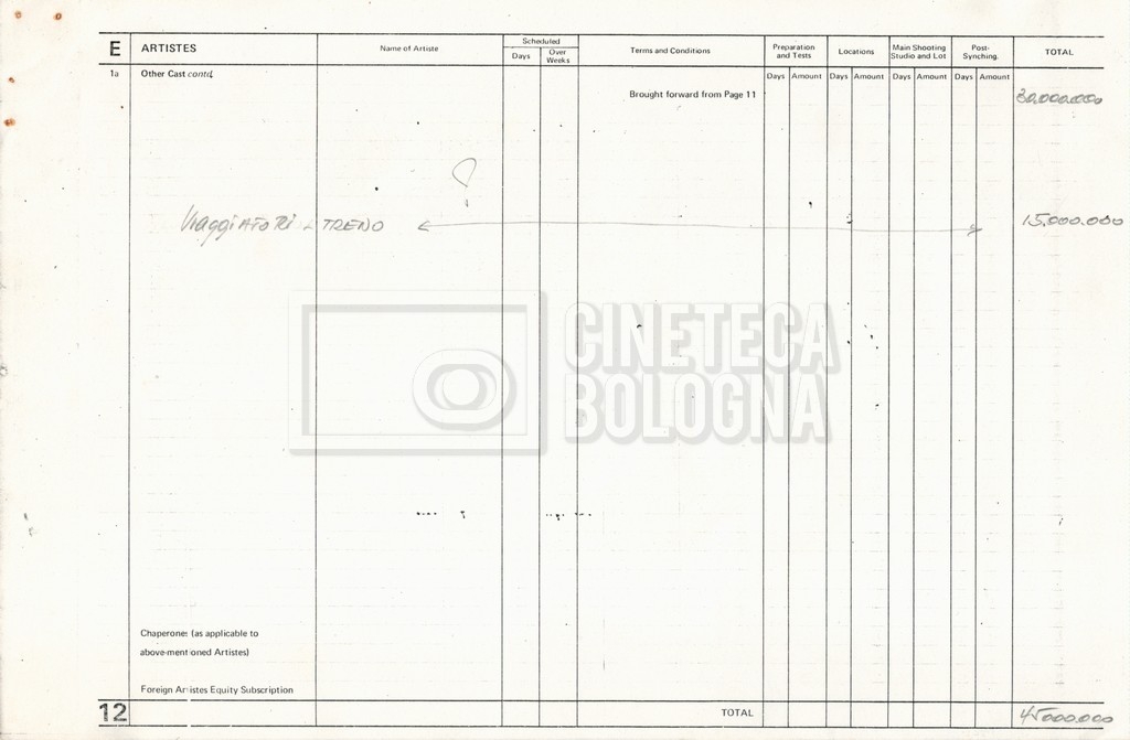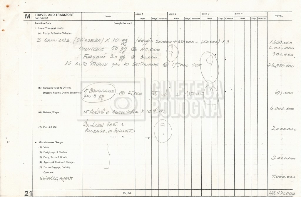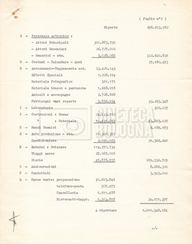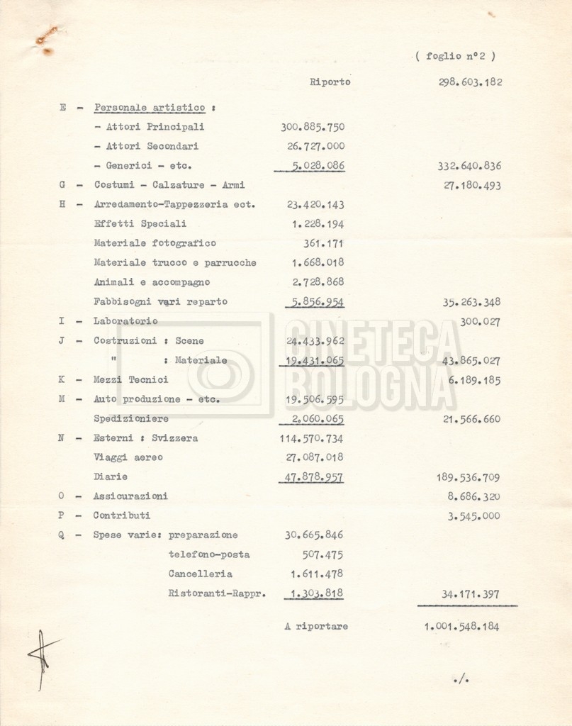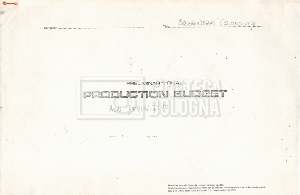 – Una richiesta di fabbisogno finanziario per le riprese in Svizzera al 31 ottobre 1975;