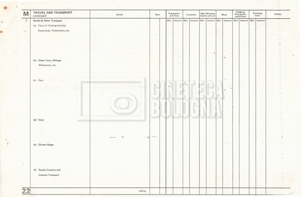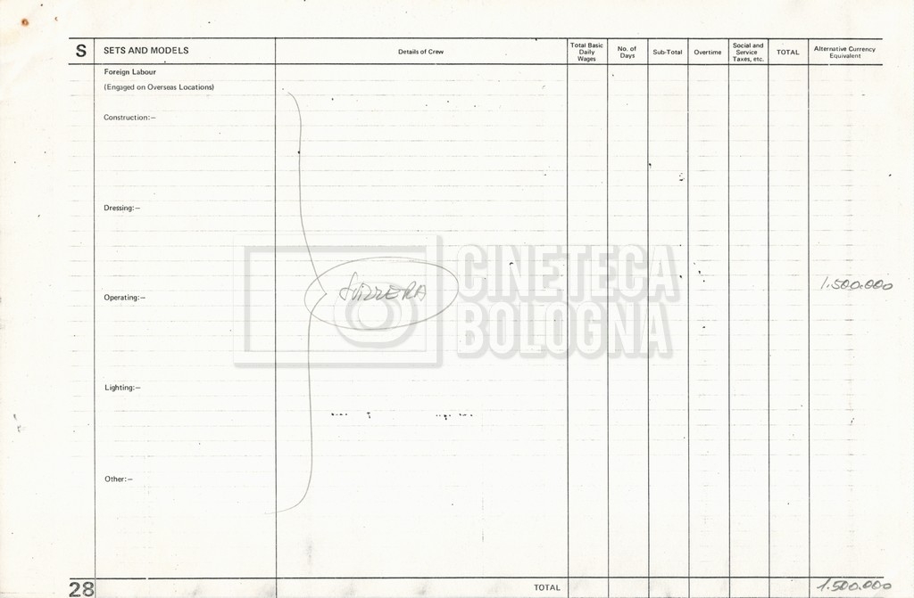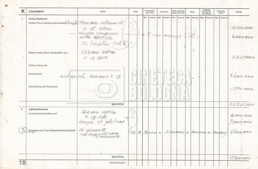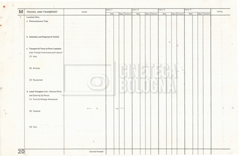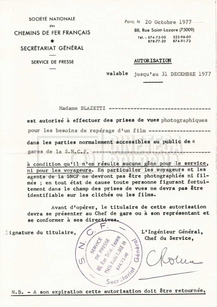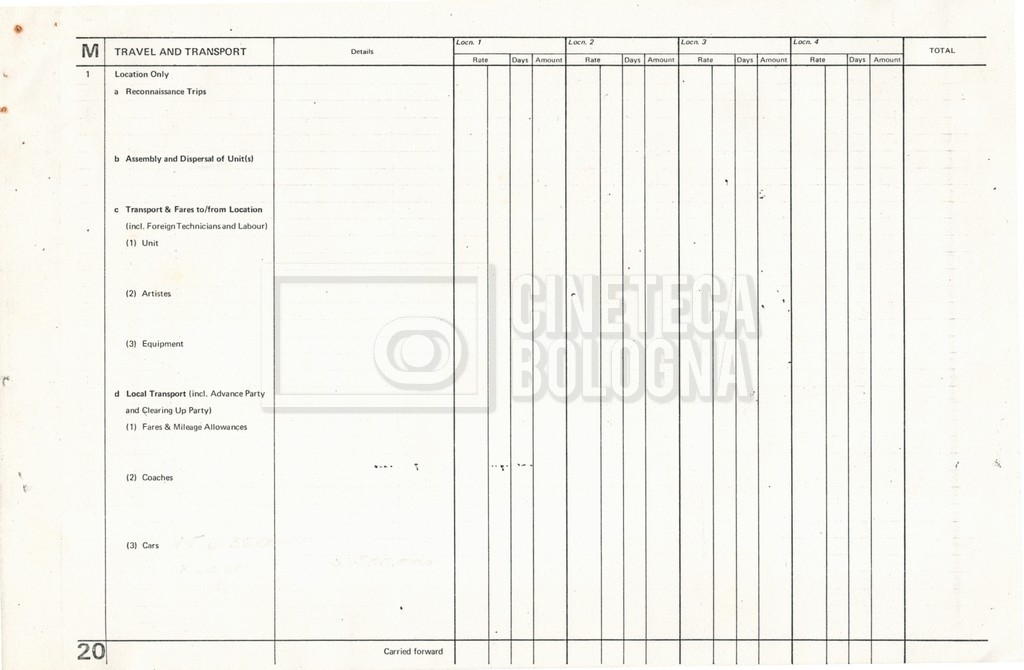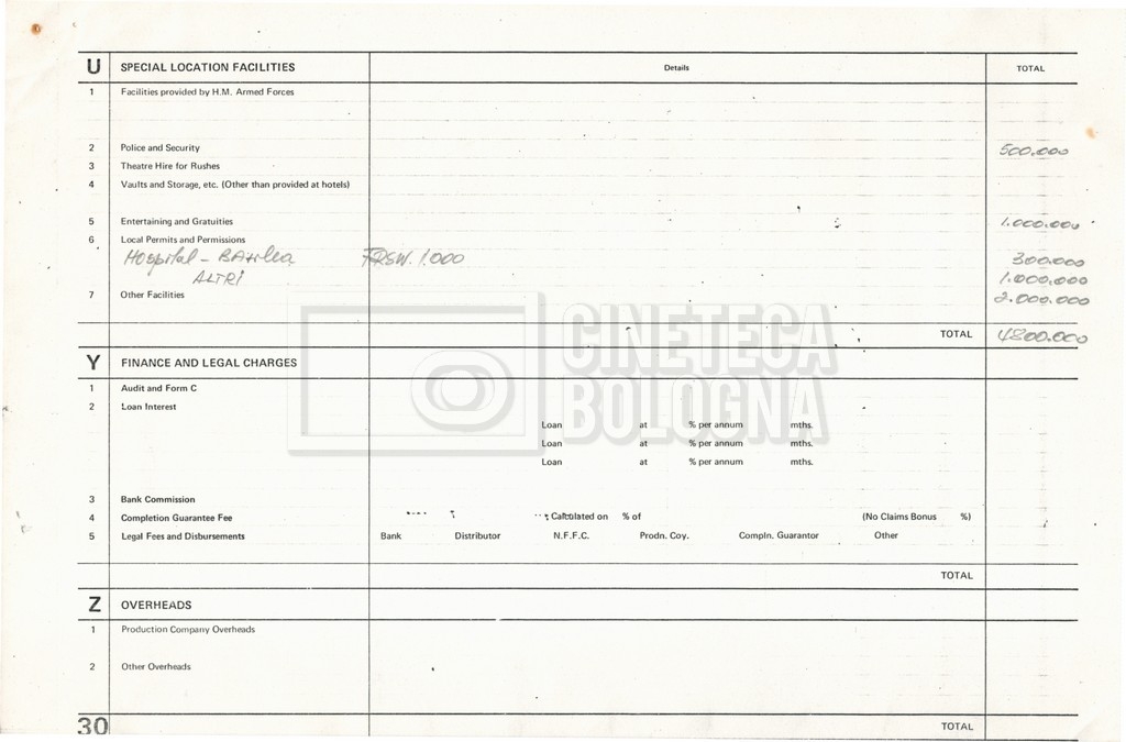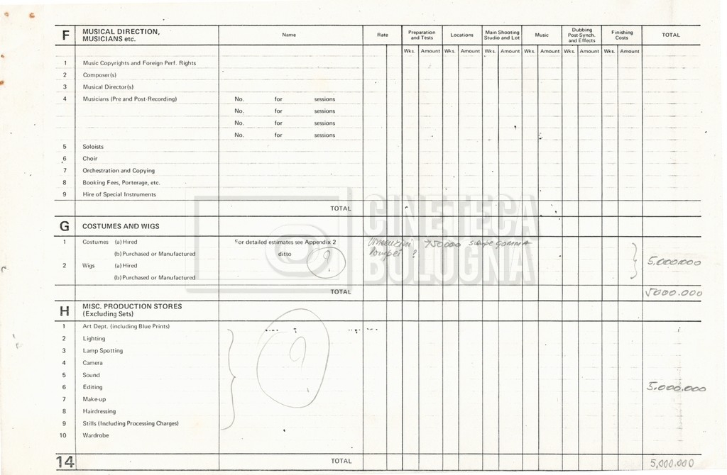 – Una richiesta di fabbisogno finanziario per le riprese in Svizzera al 31 ottobre 1975;