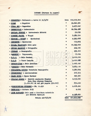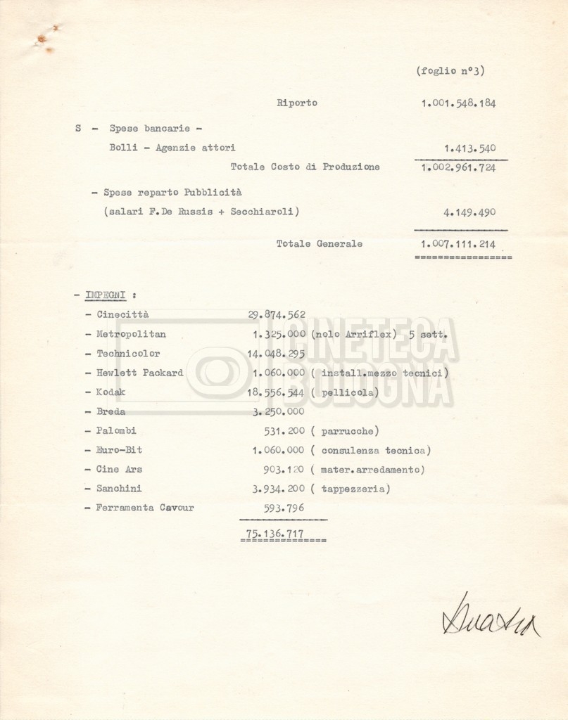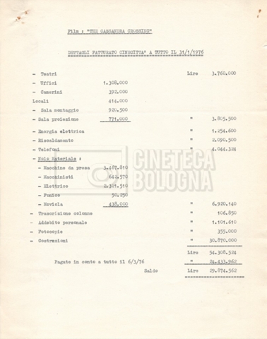 – Un doc. di riepilogo generale delle spese di produzione al 31 gennaio 1976;