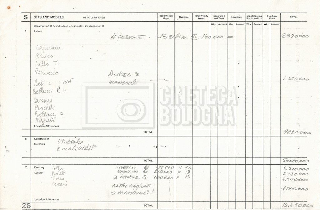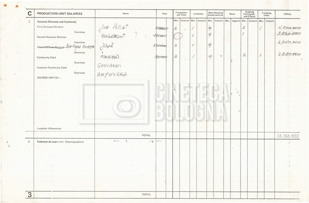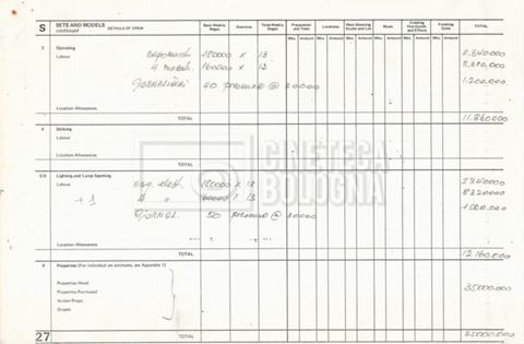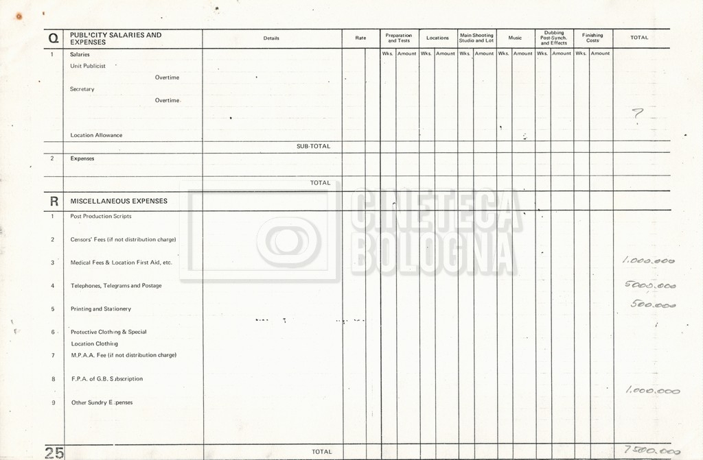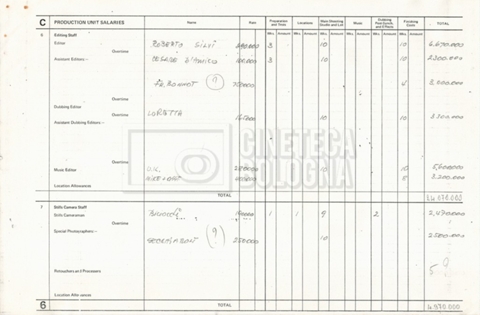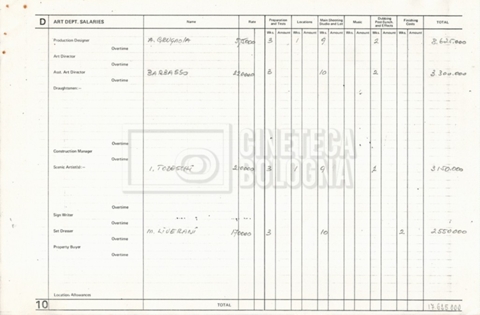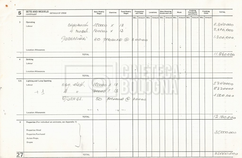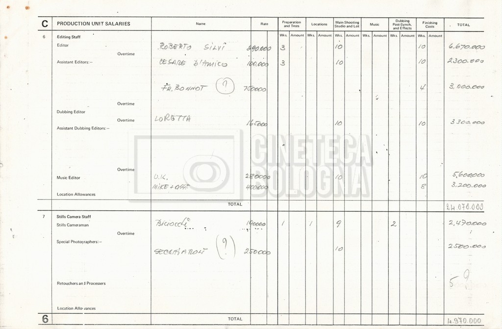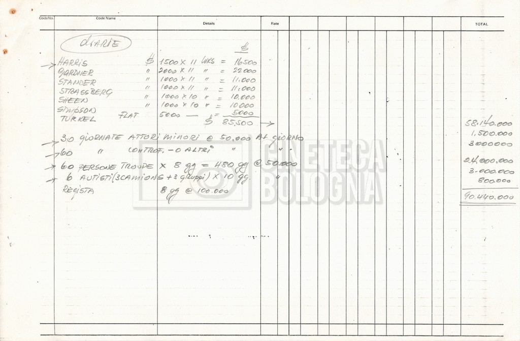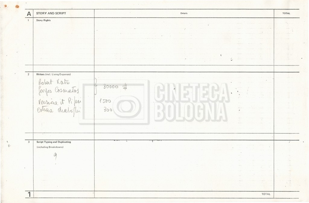 – Un riepilogo generale delle spese di produzione al 10 gennaio 1976;