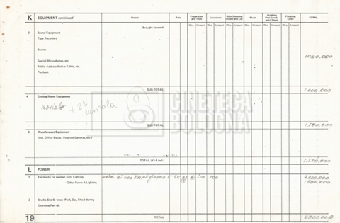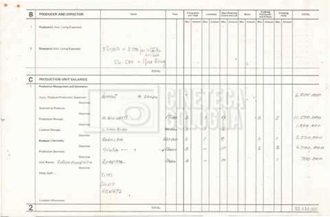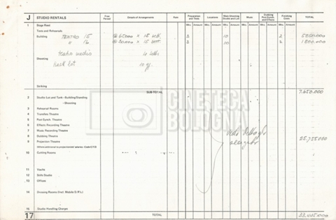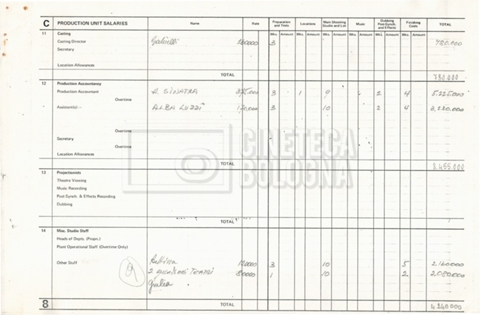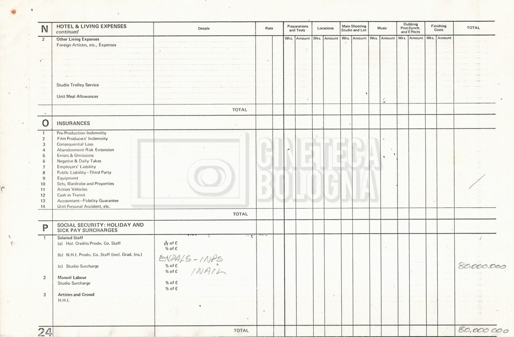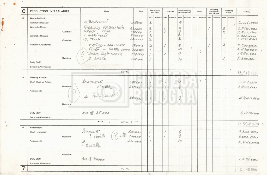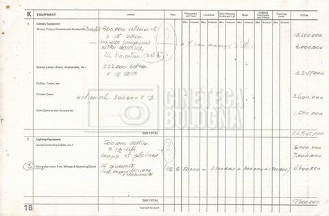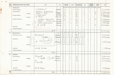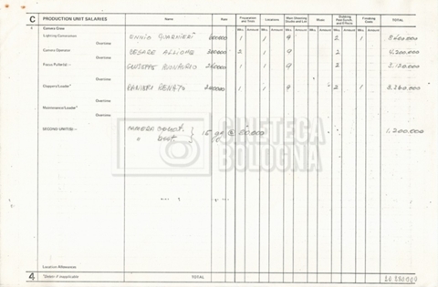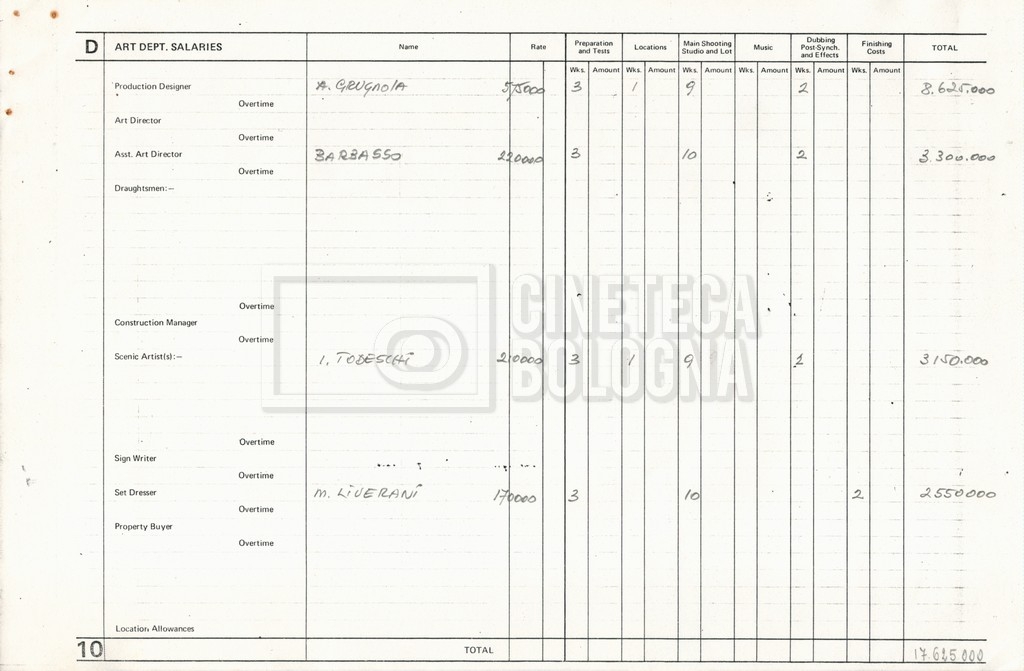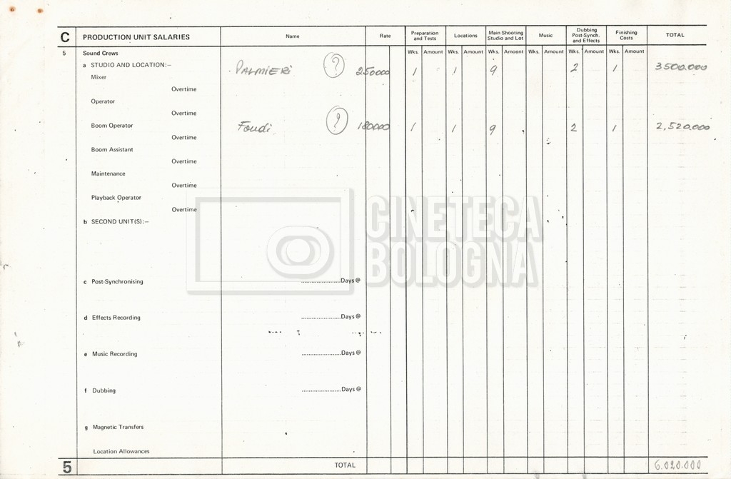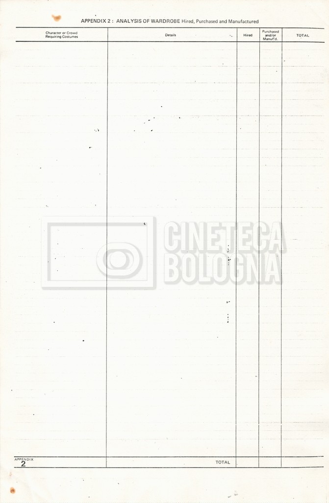 – Un riepilogo generale delle spese di produzione al 10 gennaio 1976;