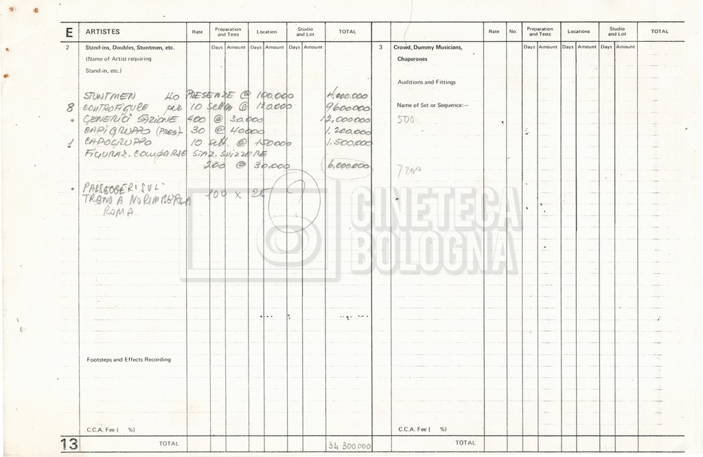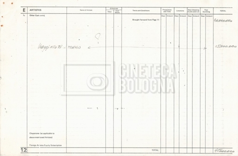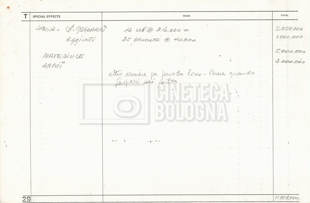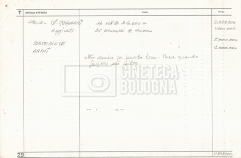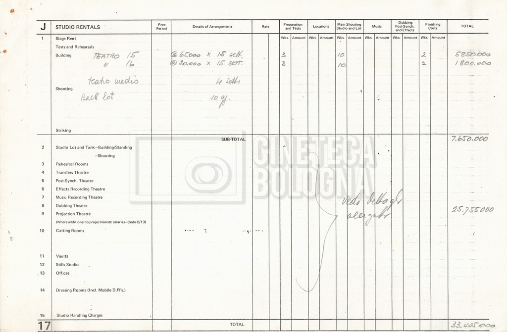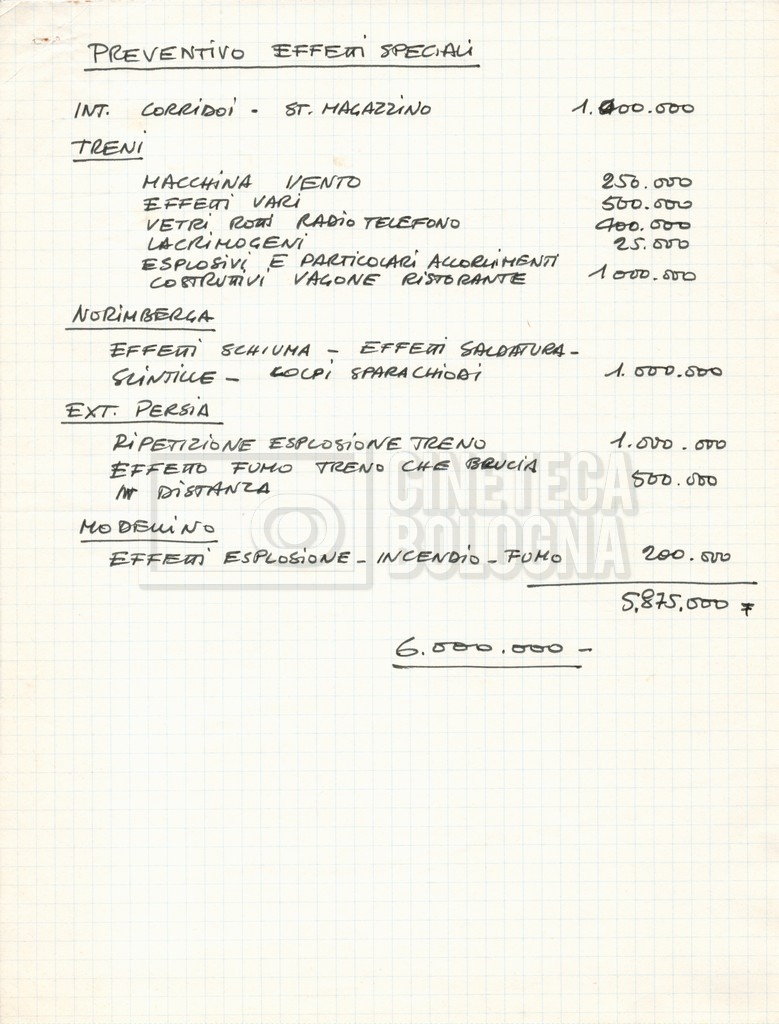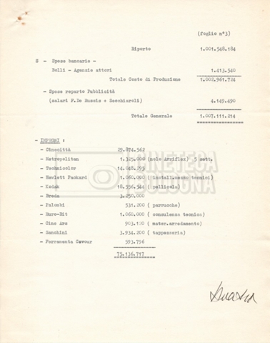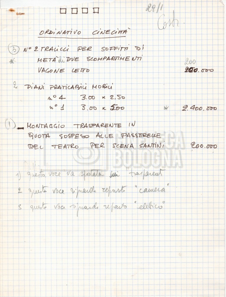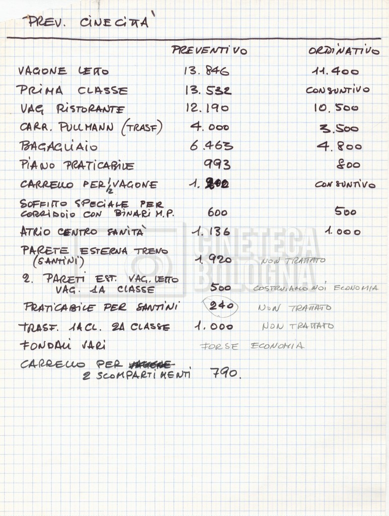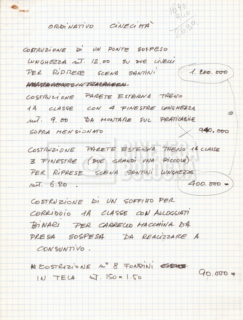 – Diversi ordinativi e preventivi mss. per le riprese a Cinecittà.