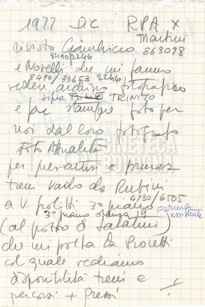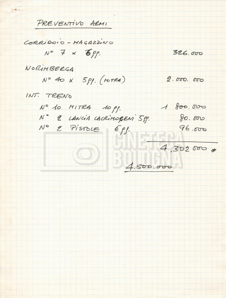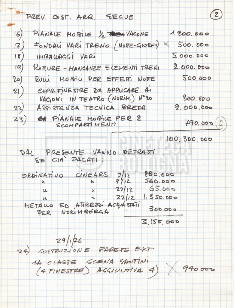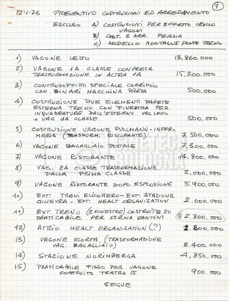 – Un preventivo di massima per le riprese a Basilea del 30 gennaio 1976;
