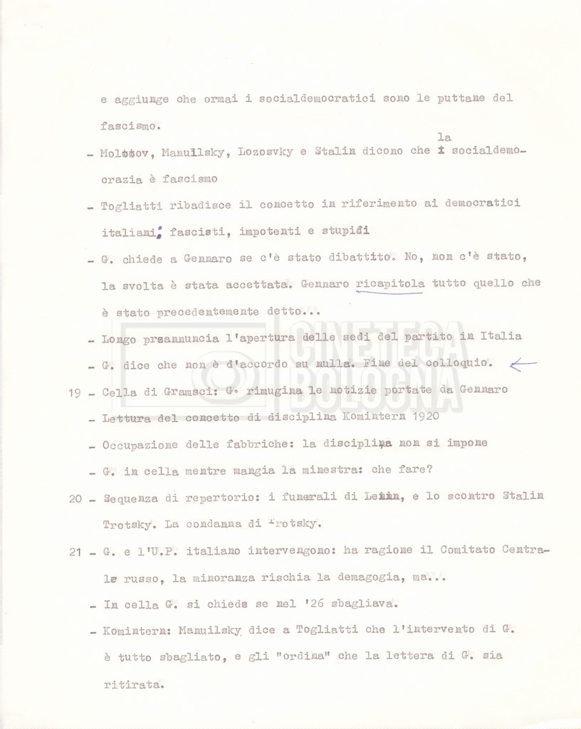 “Antonio Gramsci; dialoghi definitivi per il doppiaggio e per il ministero”
