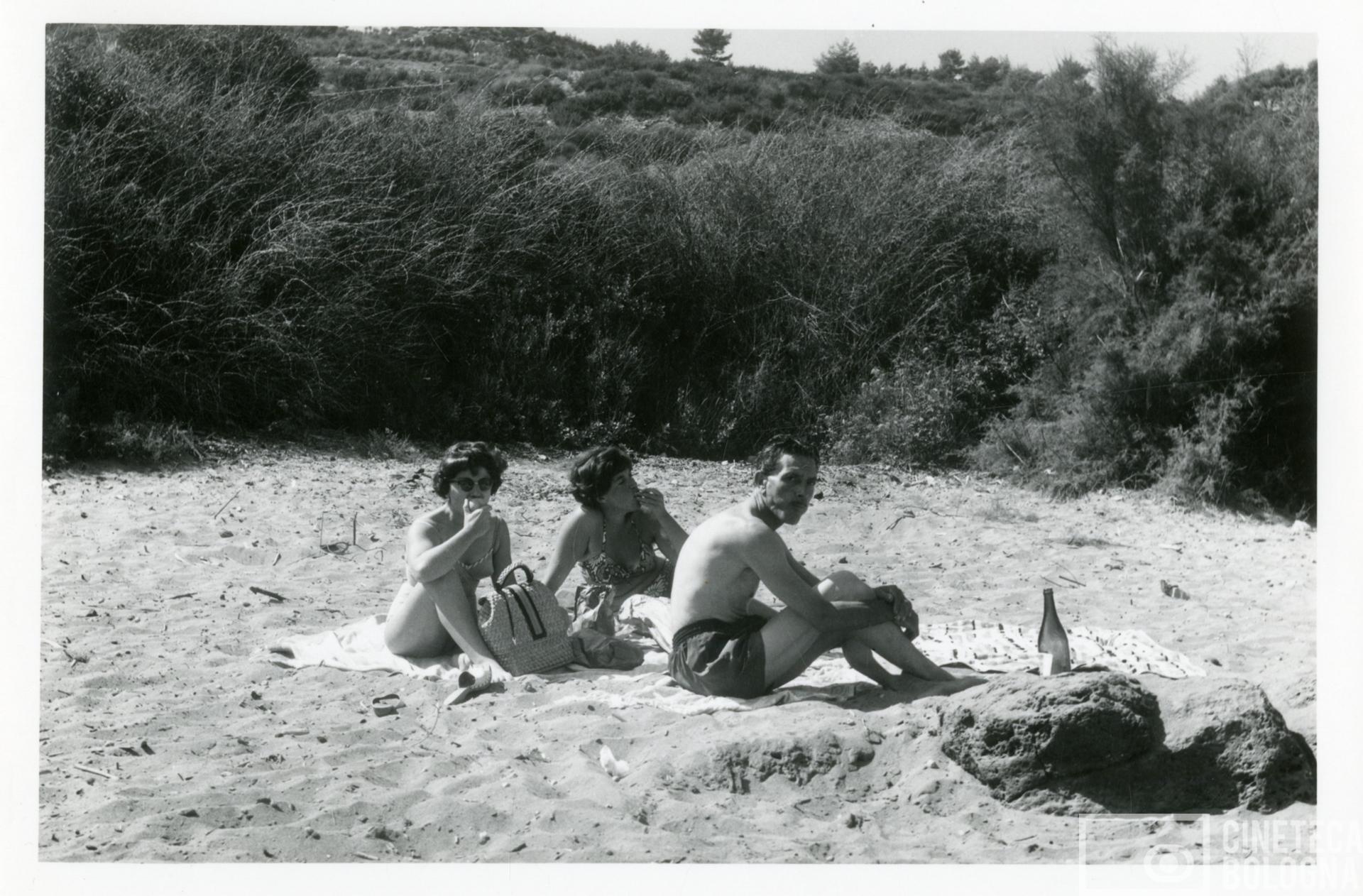 Punta Rossa. Mara Blasetti, Anna Gruber e un uomo non identificato durante le riprese del film Io amo, tu ami…