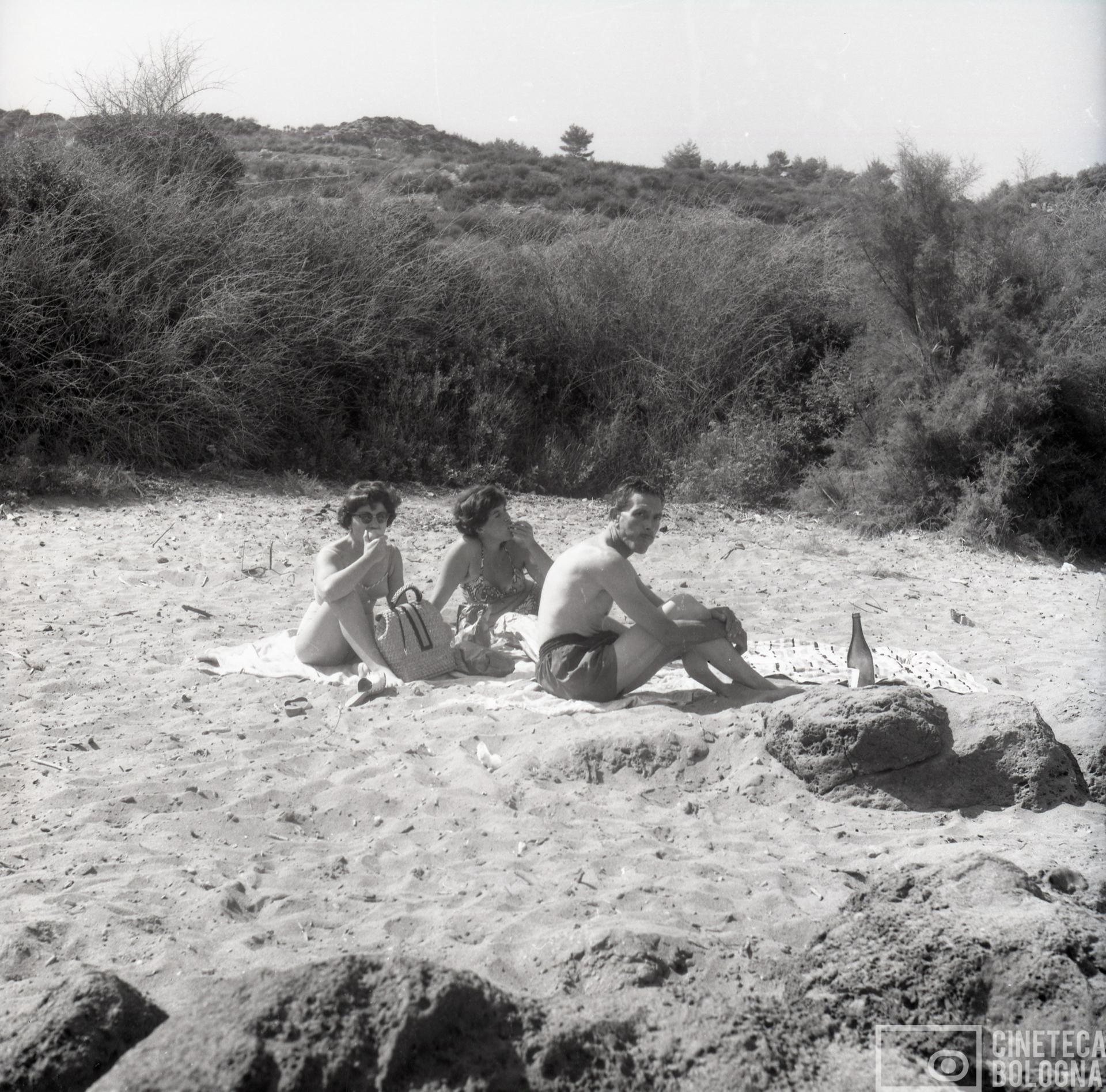 Punta Rossa. Mara Blasetti, Anna Gruber e un uomo non identificato durante le riprese del film Io amo, tu ami…