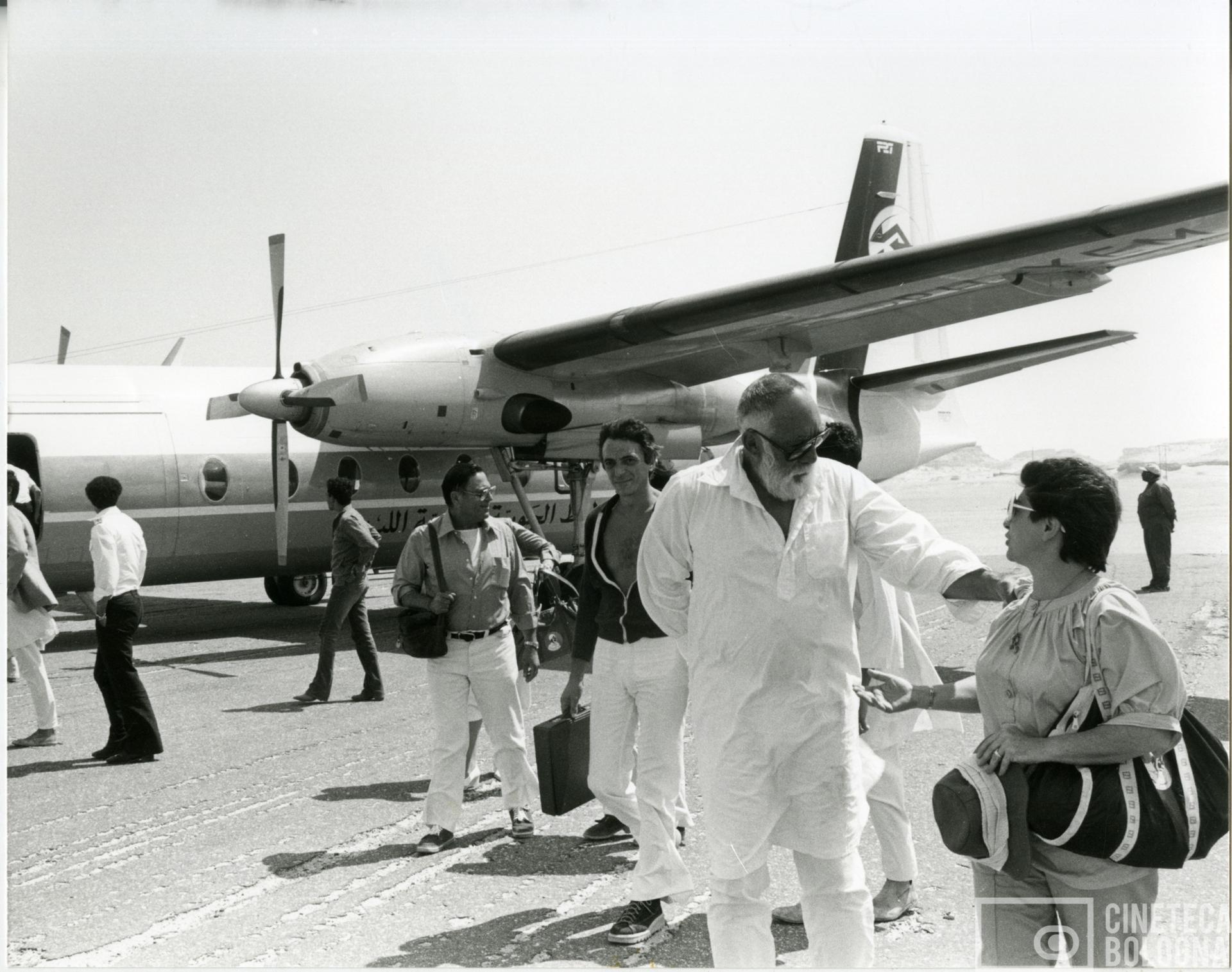Raf Vallone, Anthony Quinn con persone non identificate durante le riprese del film The Lion of the Desert