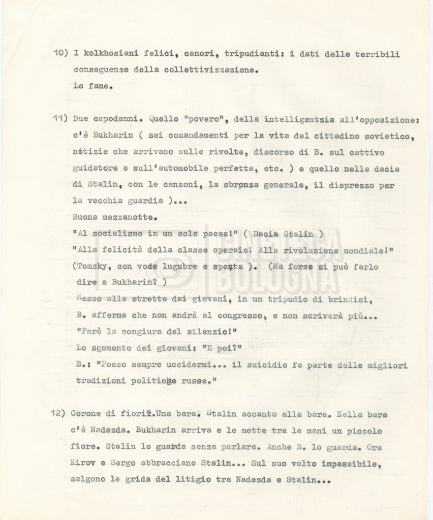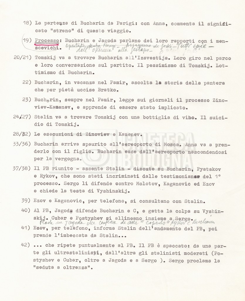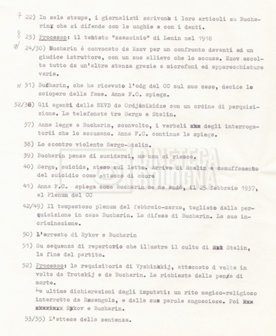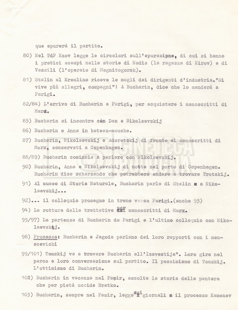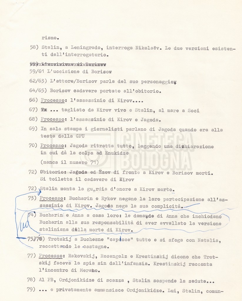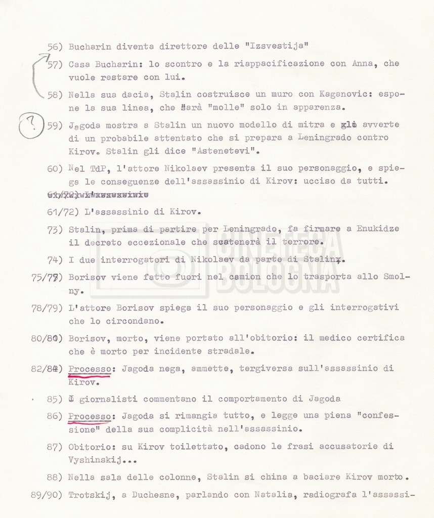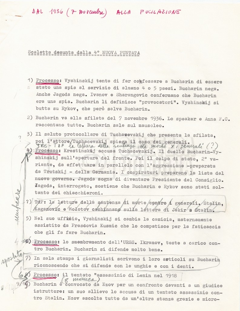 “Rapporto sulla seconda puntata; scalette desunte dalla prima versione della sceneggiatura; scalette desunte dalla nuova versione della sceneggiatura; trattamento della prima puntata (con annotazioni)”