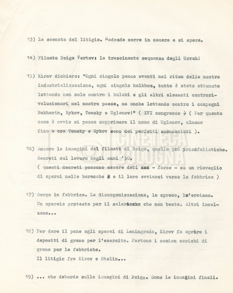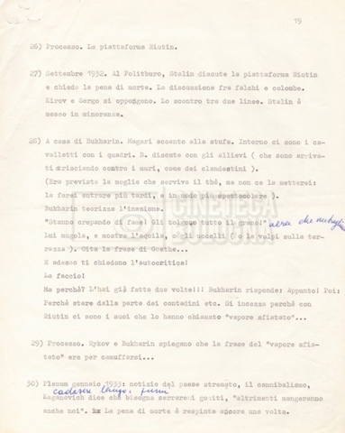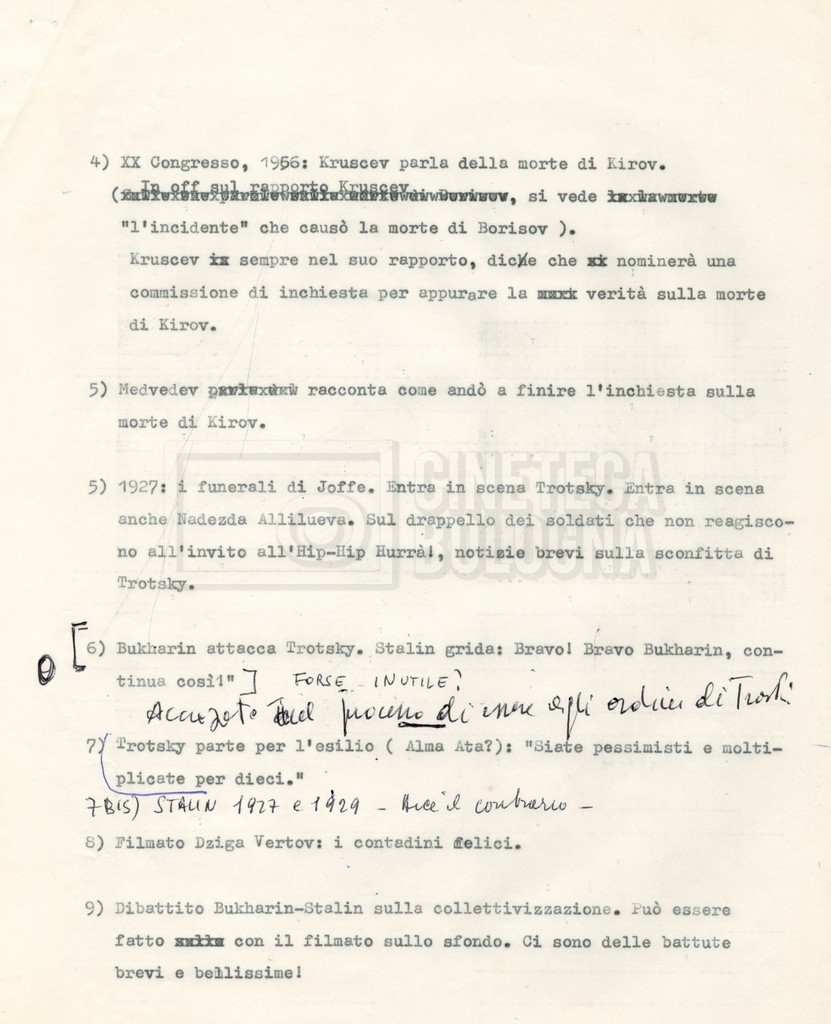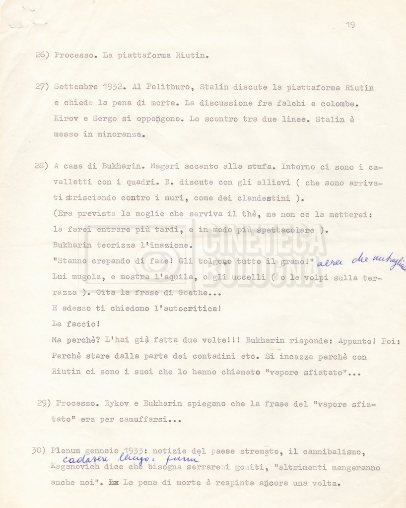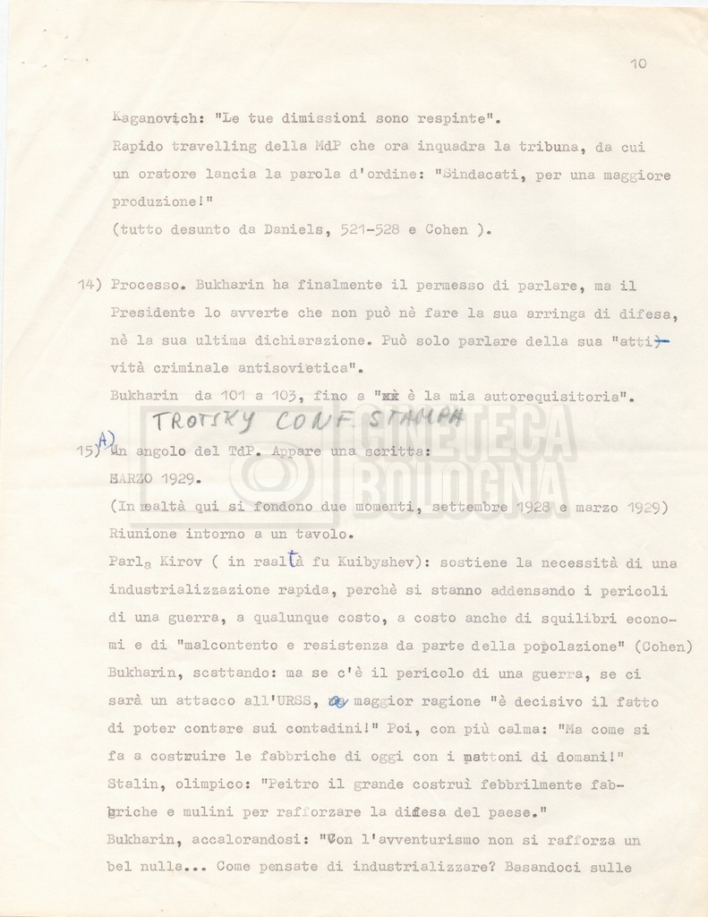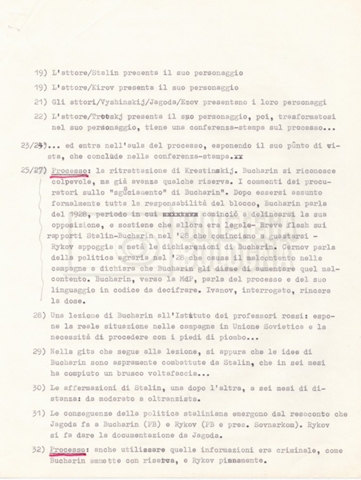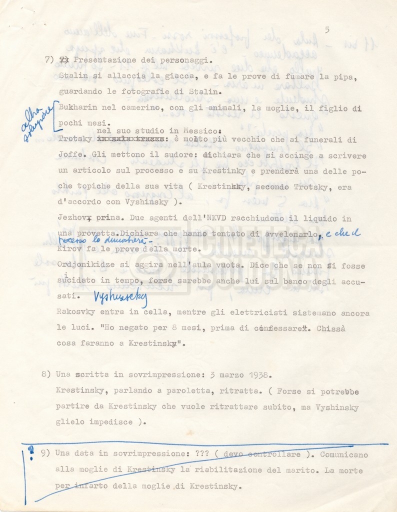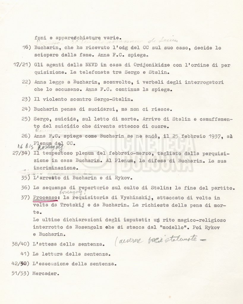 “Rapporto sulla seconda puntata; scalette desunte dalla prima versione della sceneggiatura; scalette desunte dalla nuova versione della sceneggiatura; trattamento della prima puntata (con annotazioni)”
