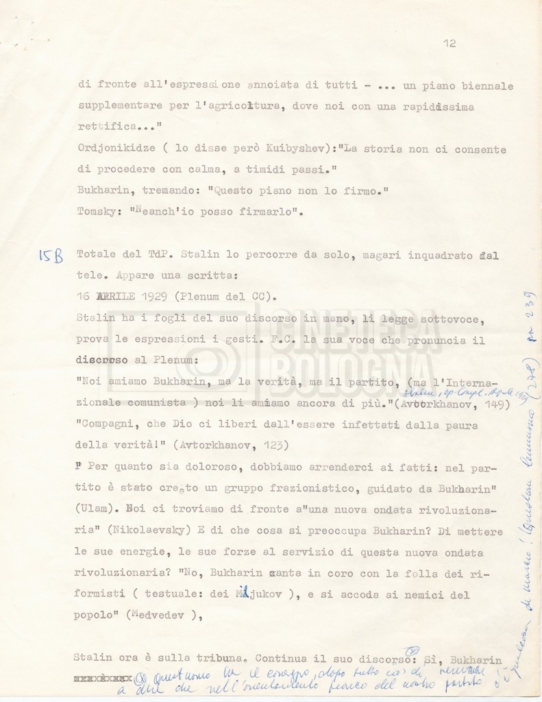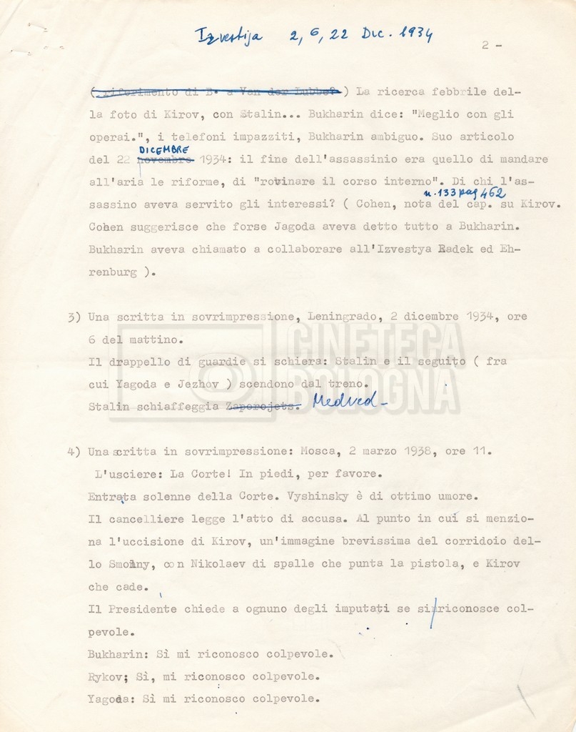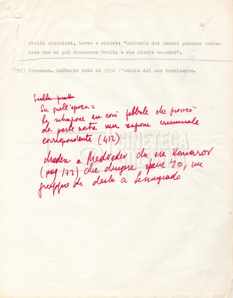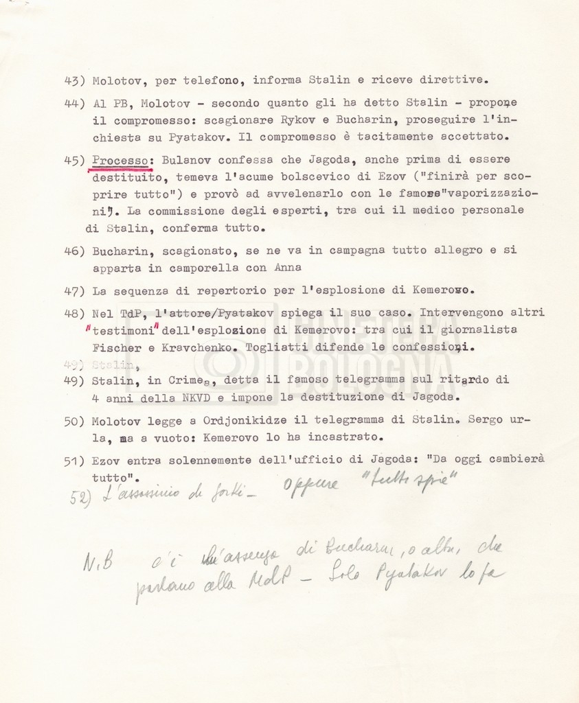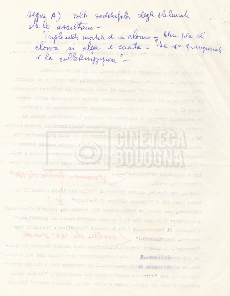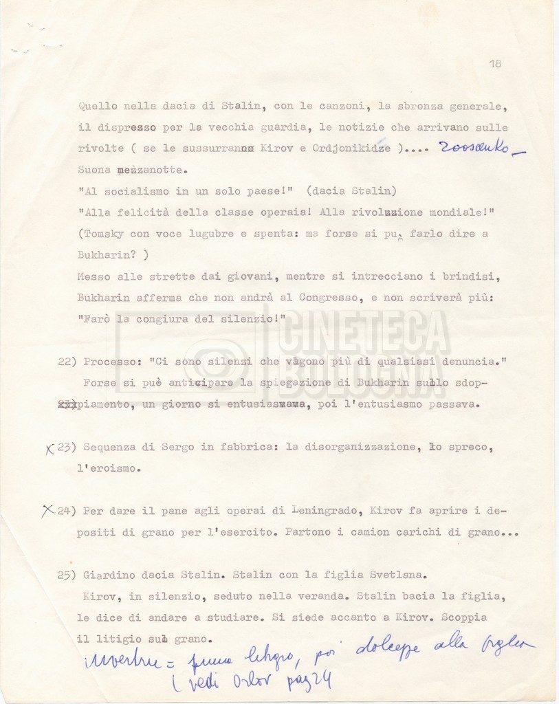 “Rapporto sulla seconda puntata; scalette desunte dalla prima versione della sceneggiatura; scalette desunte dalla nuova versione della sceneggiatura; trattamento della prima puntata (con annotazioni)”