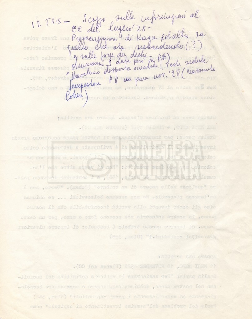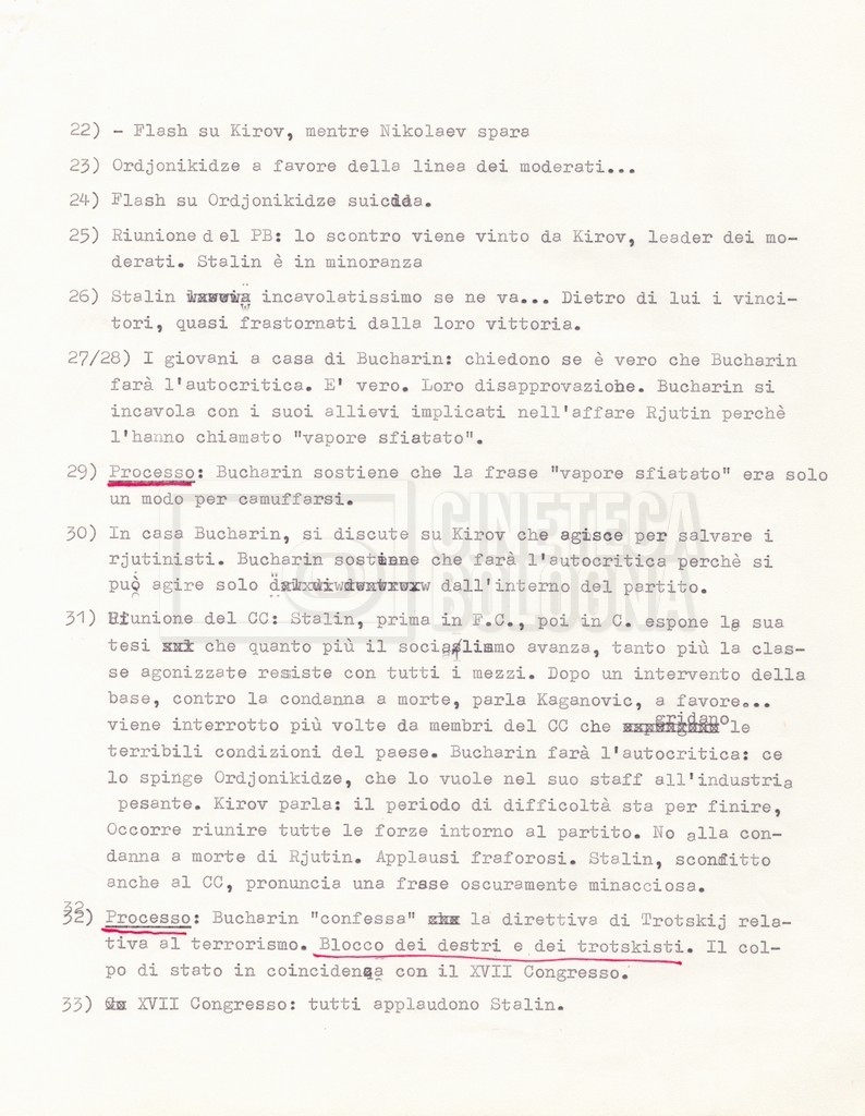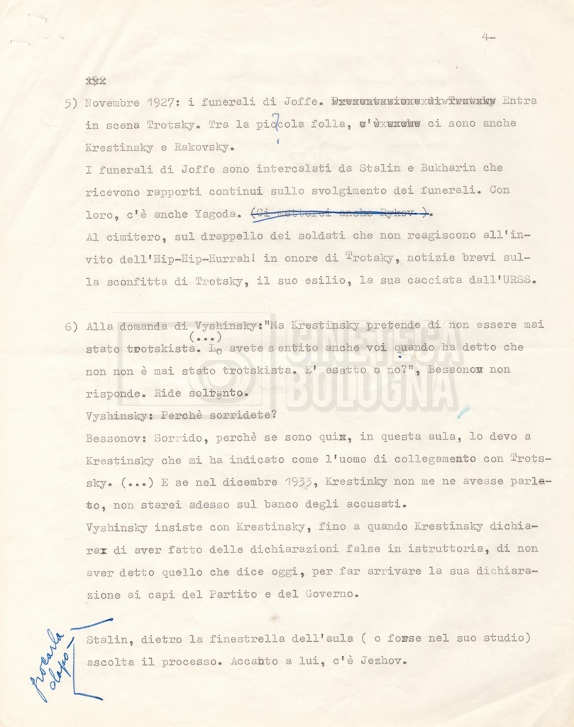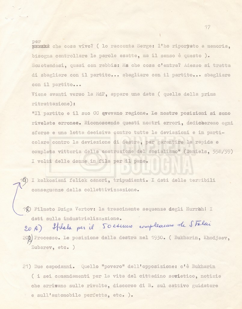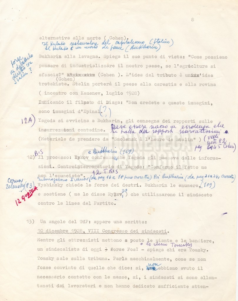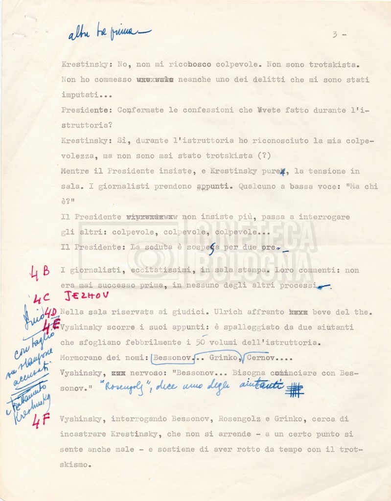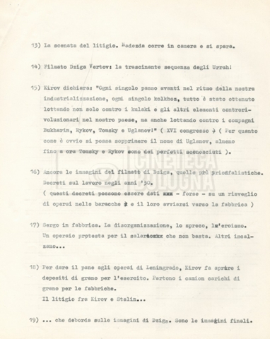 “Rapporto sulla seconda puntata; scalette desunte dalla prima versione della sceneggiatura; scalette desunte dalla nuova versione della sceneggiatura; trattamento della prima puntata (con annotazioni)”