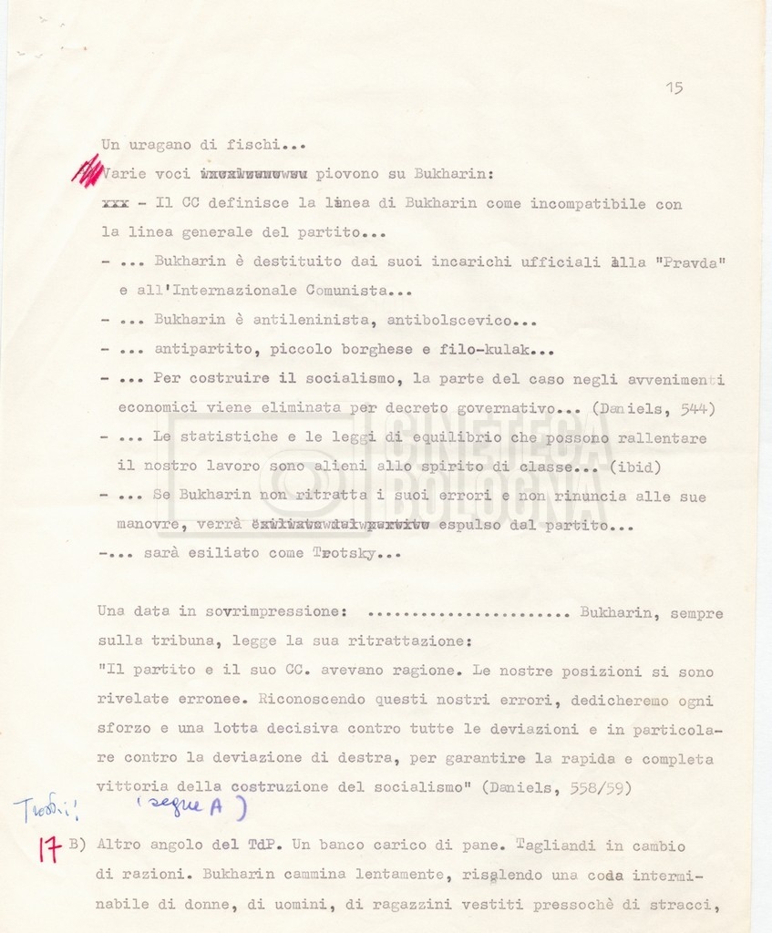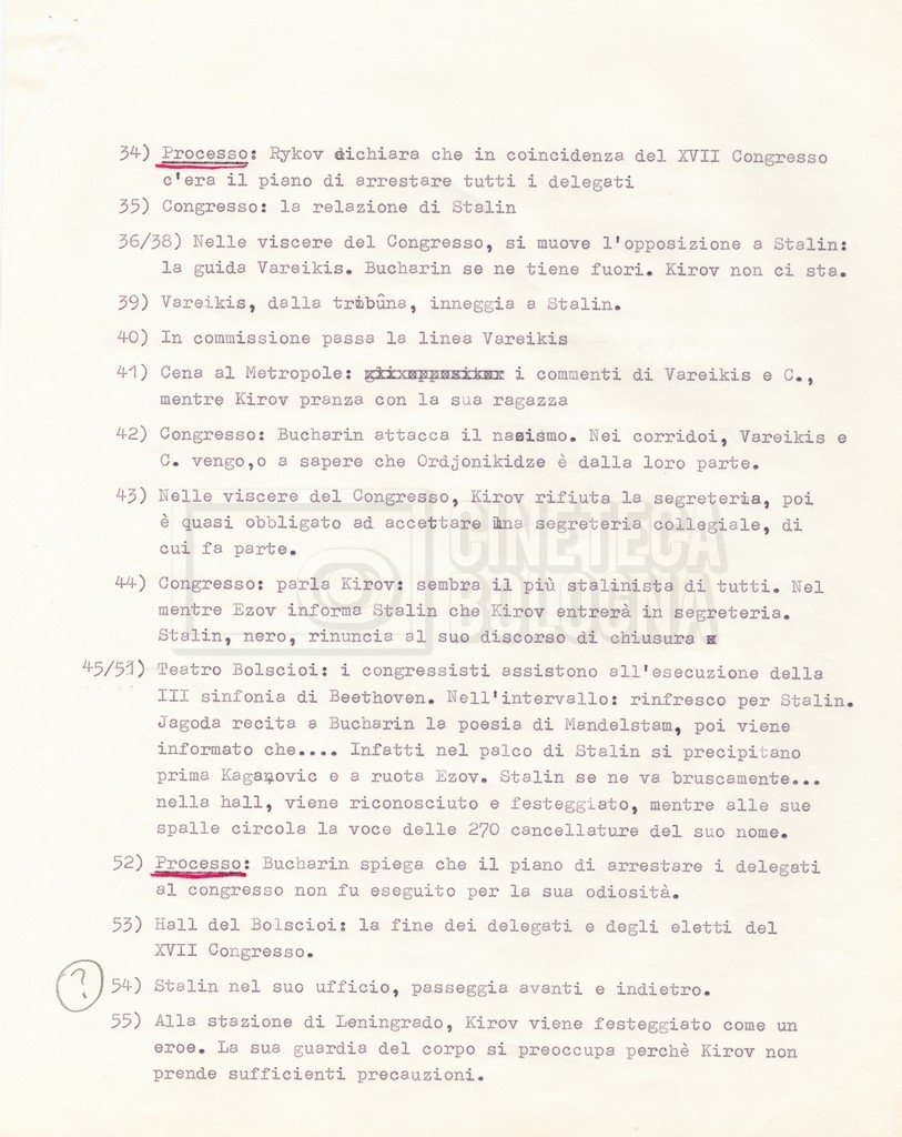– “Scalette desunte dalla ‘nuova’ versione della sceneggiatura (in quattro puntate)”.