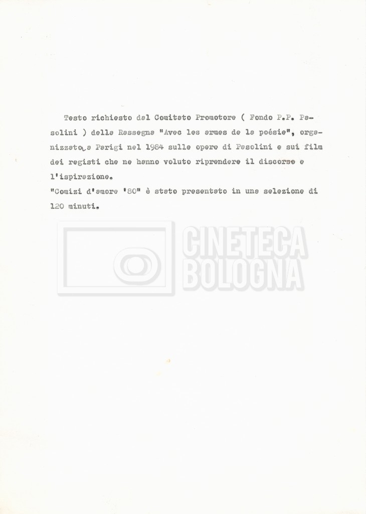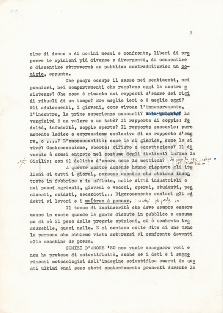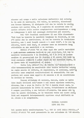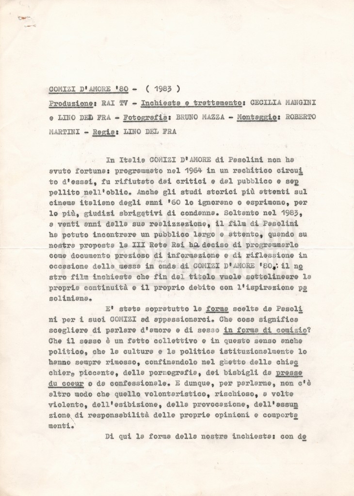 – Tre copie di un doc. dat. dal titolo Comizi dAmore 80 Appunti per lufficio stampa RAI;