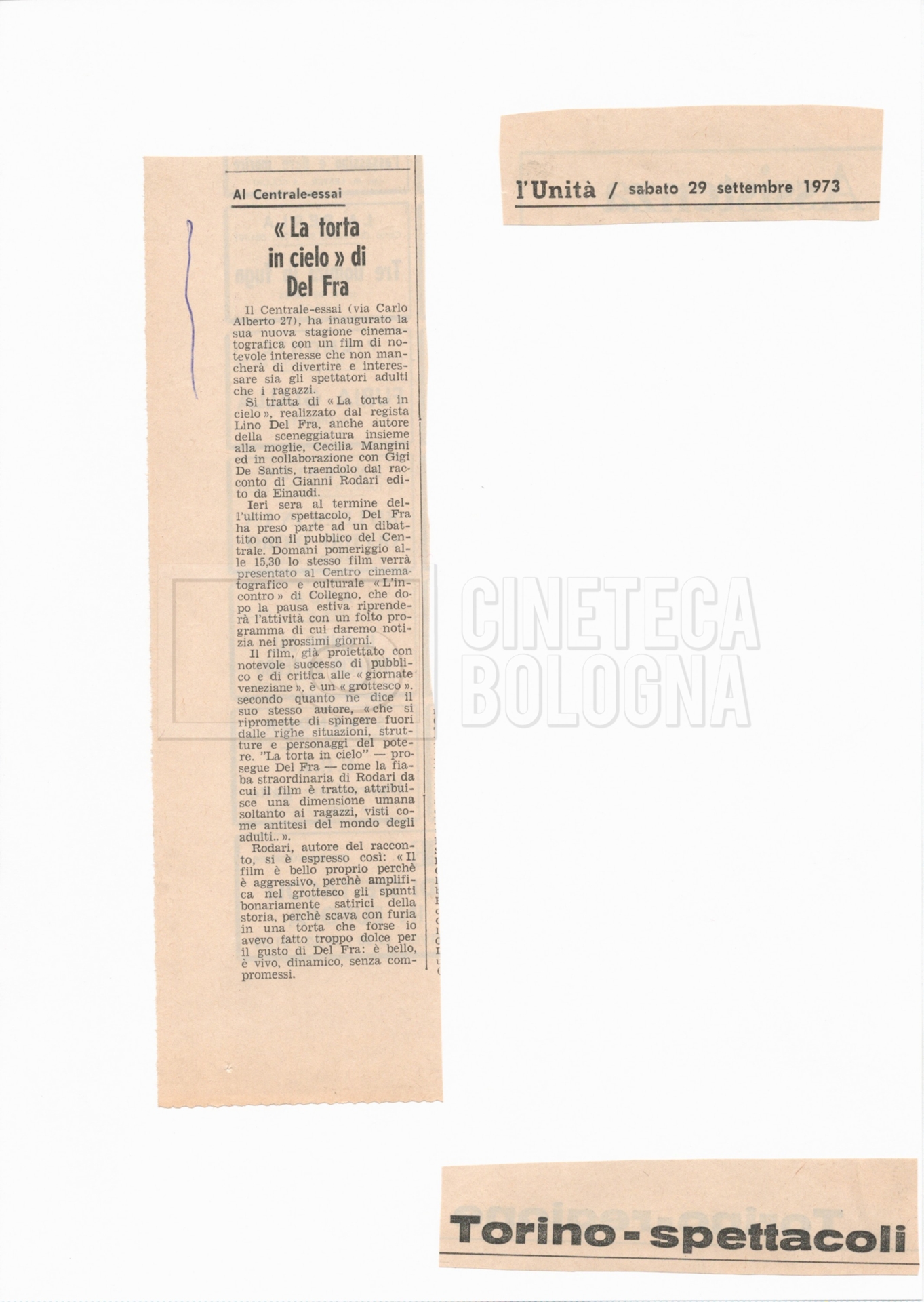“Materiale Italnoleggio; manifesti; appunti e dichiarazioni di Lino Del Fra sul film”