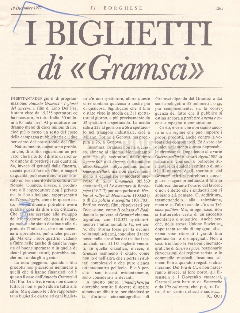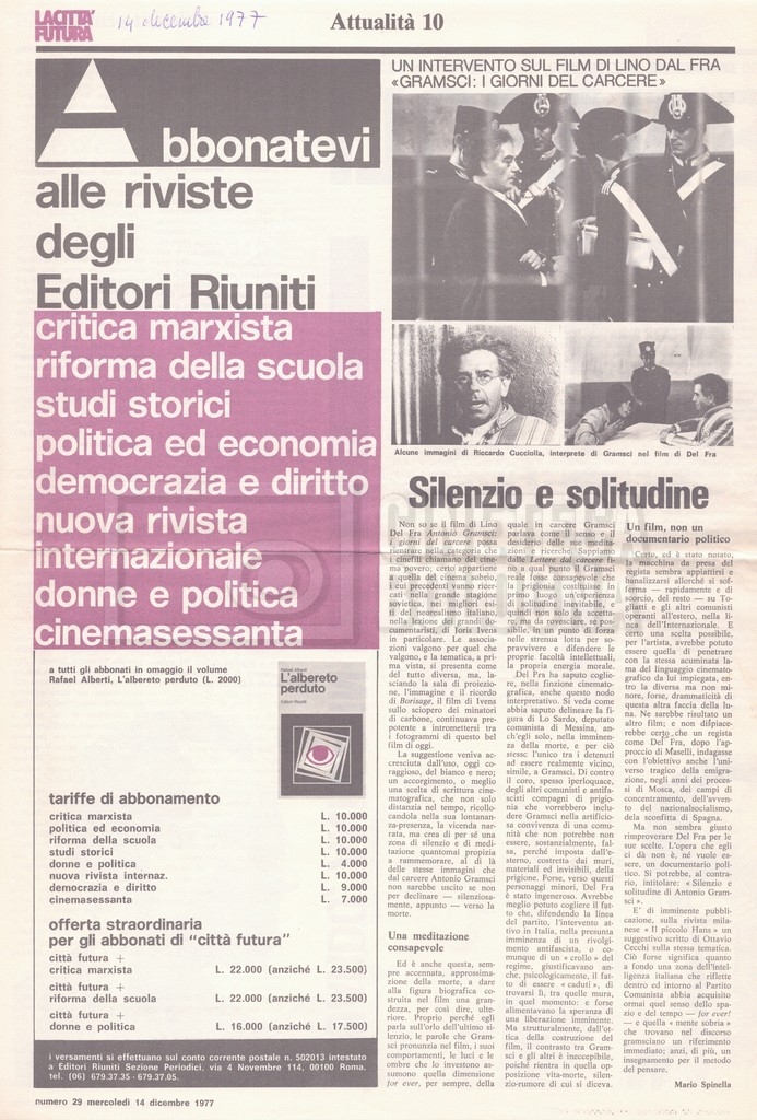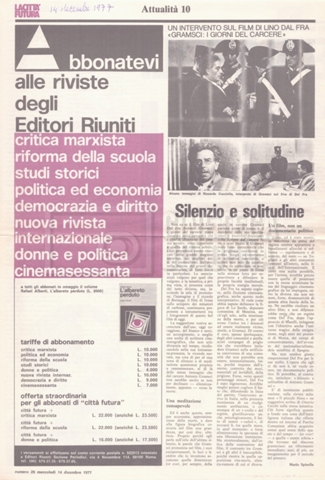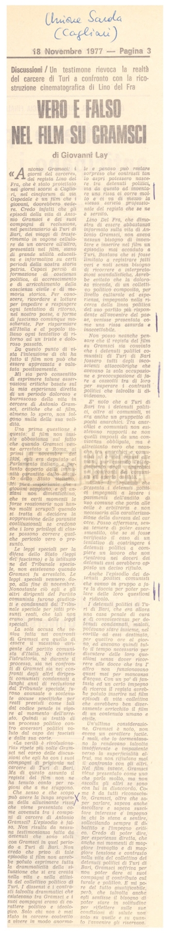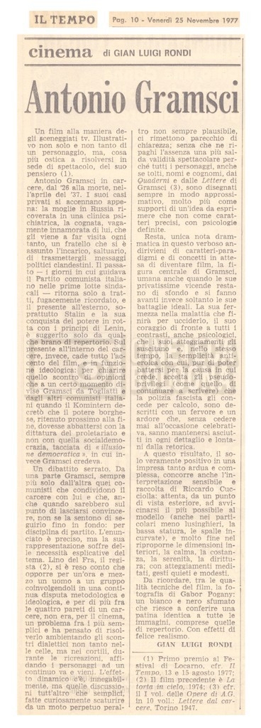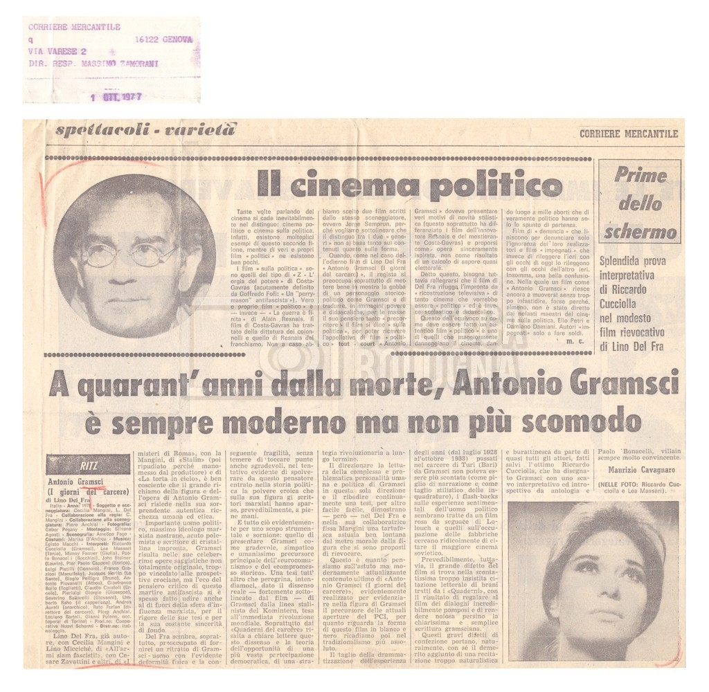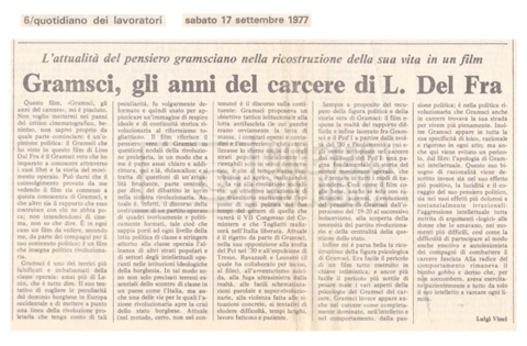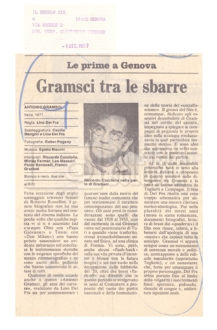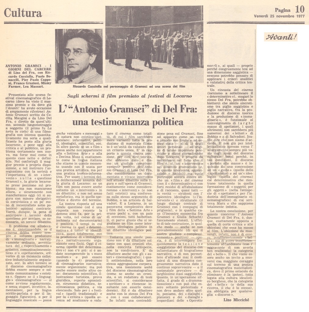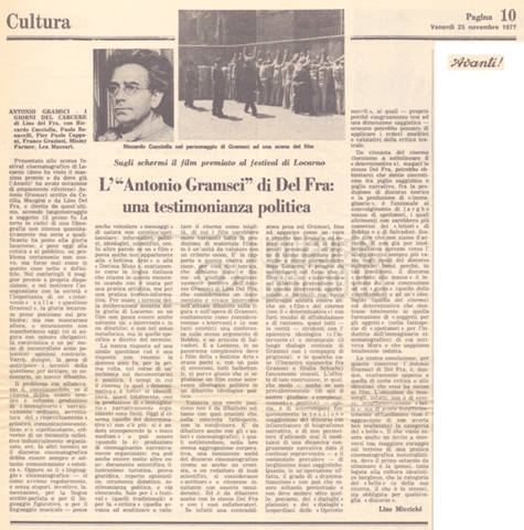 Si segnala inoltre una Lettera da ‘Cinema Italien’ in cui si informa Lino Del Fra della presenza del suo film Antonio Gramsci – I giorni del carcere agli ‘Incontri del cinema italiano’ di Annecy (25 settembre 1989).