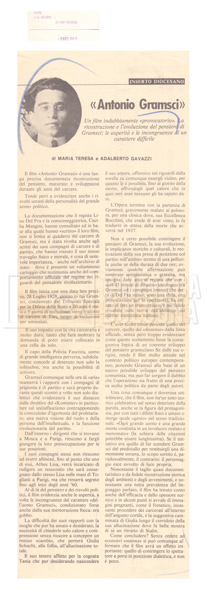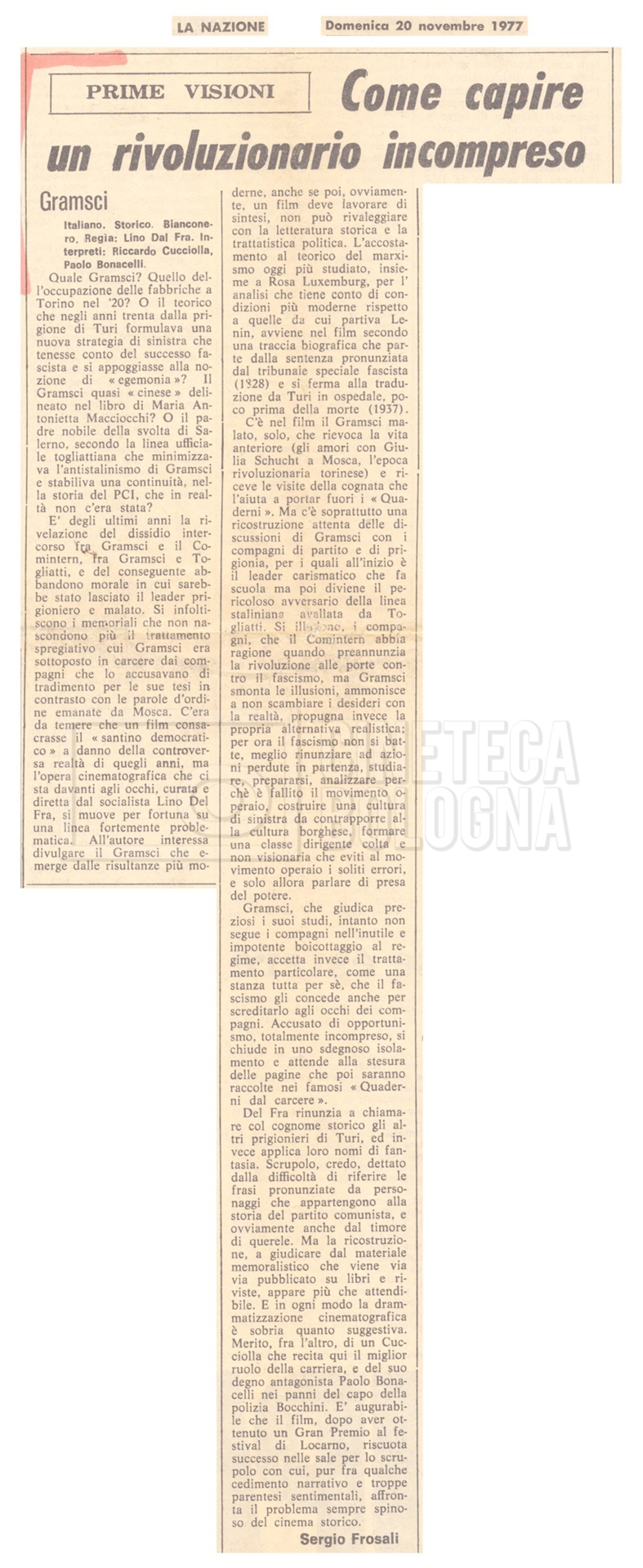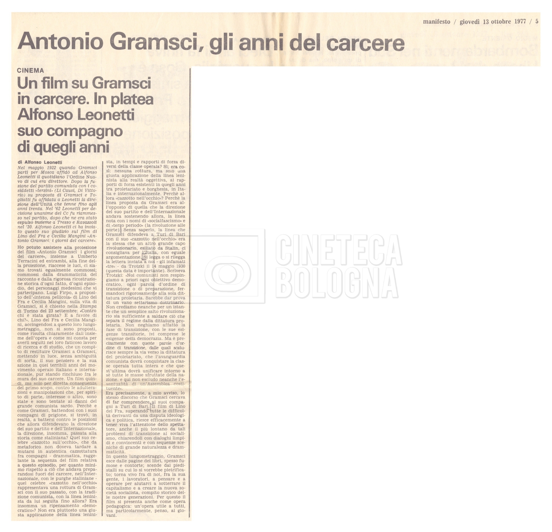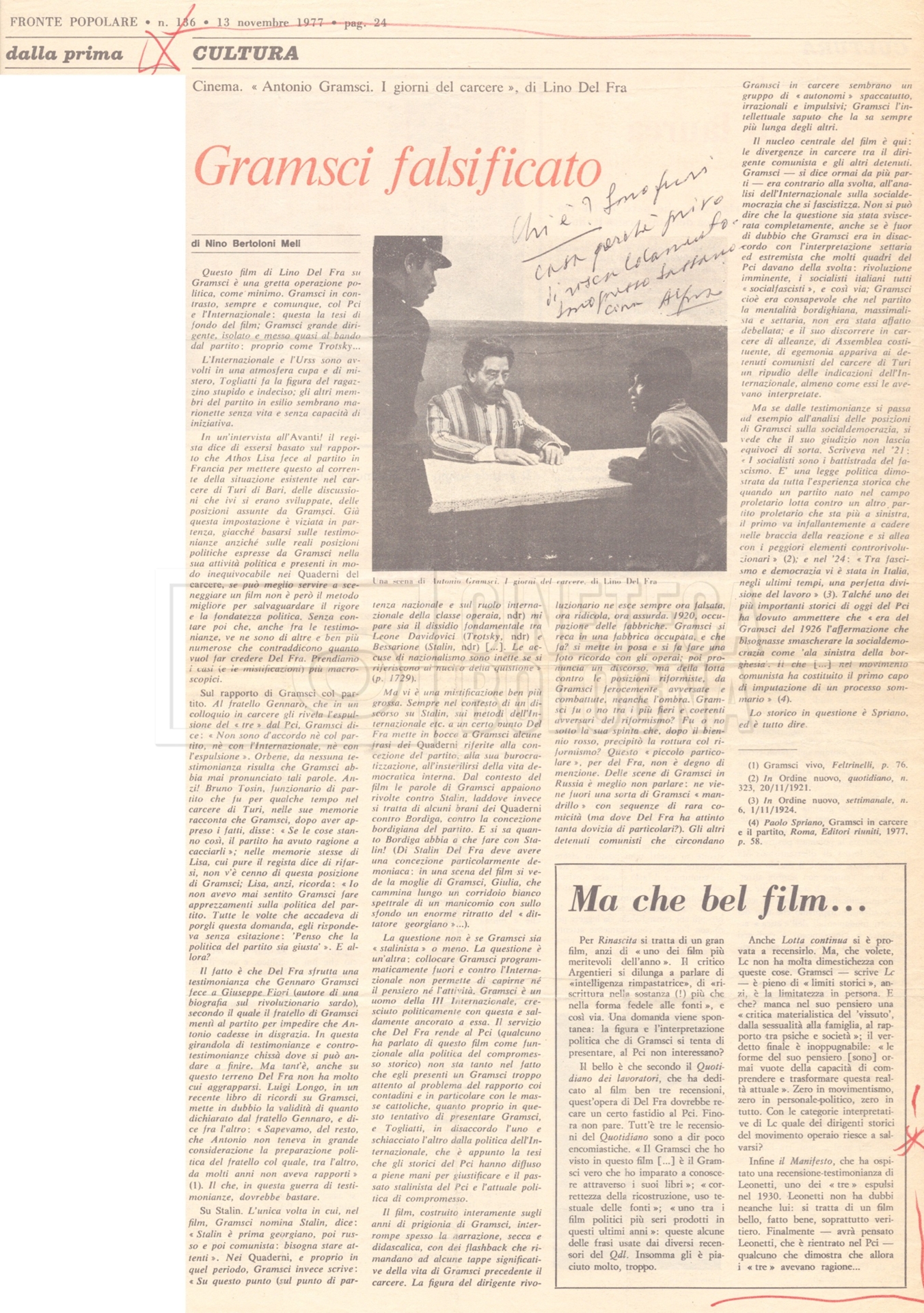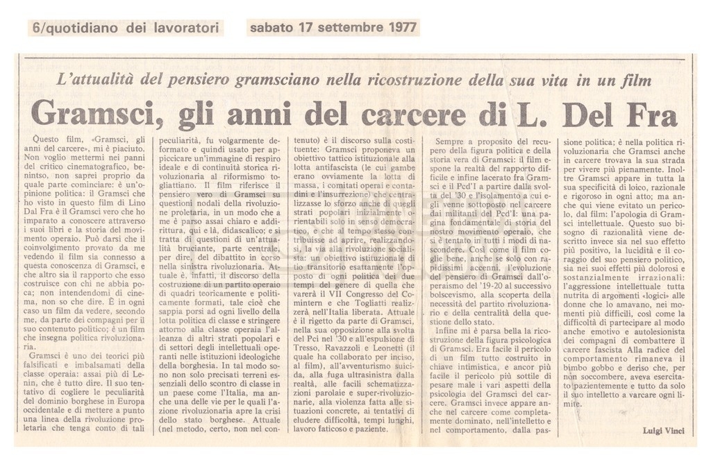 Si segnala inoltre una Lettera da ‘Cinema Italien’ in cui si informa Lino Del Fra della presenza del suo film Antonio Gramsci – I giorni del carcere agli ‘Incontri del cinema italiano’ di Annecy (25 settembre 1989).