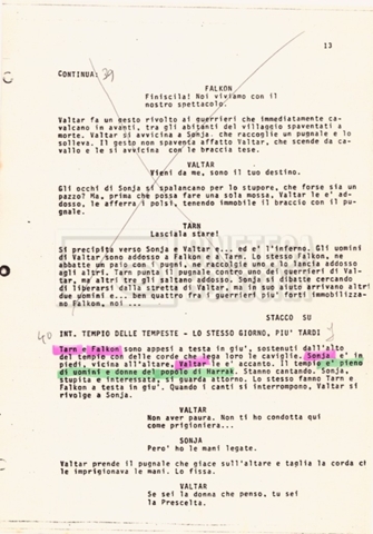 Torna alla banca dati “Red Sonja” Documento storico Fondo Mara Blasetti / “Film preparati ma non girati” / Red Sonja Ambiti e contenuto Gli autori sono Sergio Altieri, David Franzoni e Stanley Mann. Informazioni archivistiche Cronologia: 01 dicembre 1983 Numero di ordinamento definitivo: 2.11.3 Numero di ordinamento provvisorio: M5.1 Descrizione fisica: volume Immagini digitalizzate Documenti correlati Vai alla banca dati