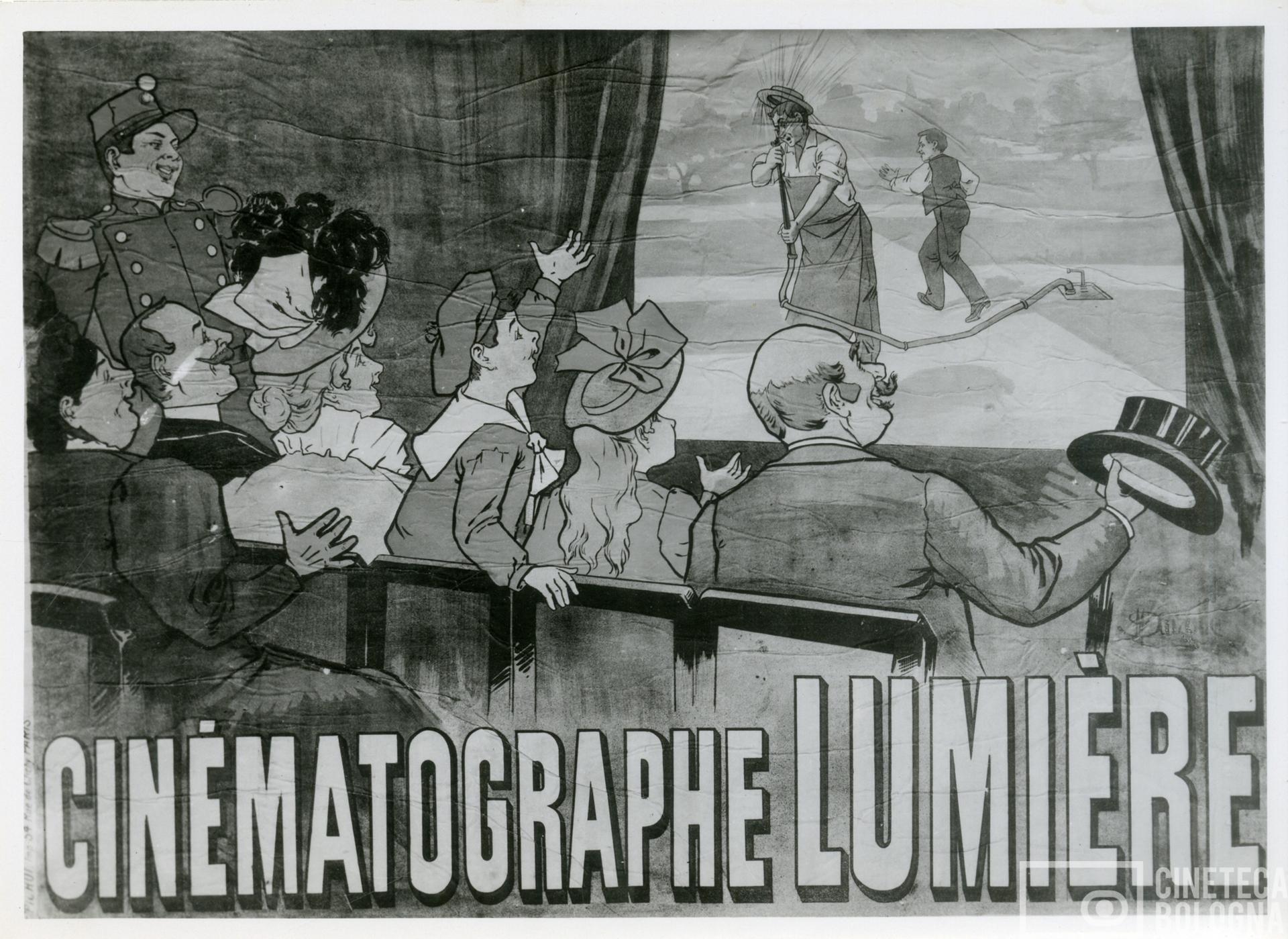 Riproduzione di un affisso del cinematografo dei fratelli Lumière