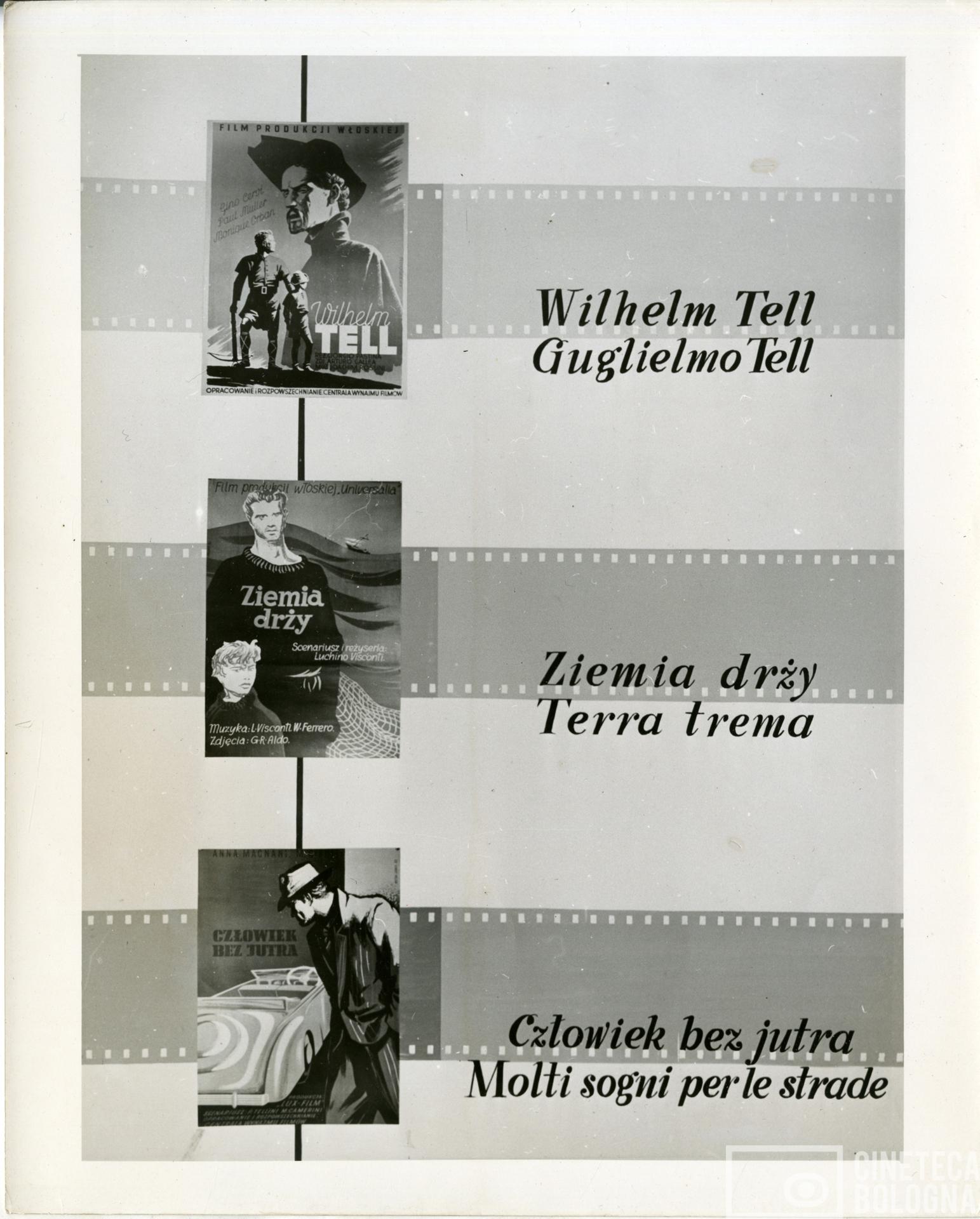 Riproduzione dei manifesti dei film Guglielmo Tell, La terra trema, Molti sogni per le strade