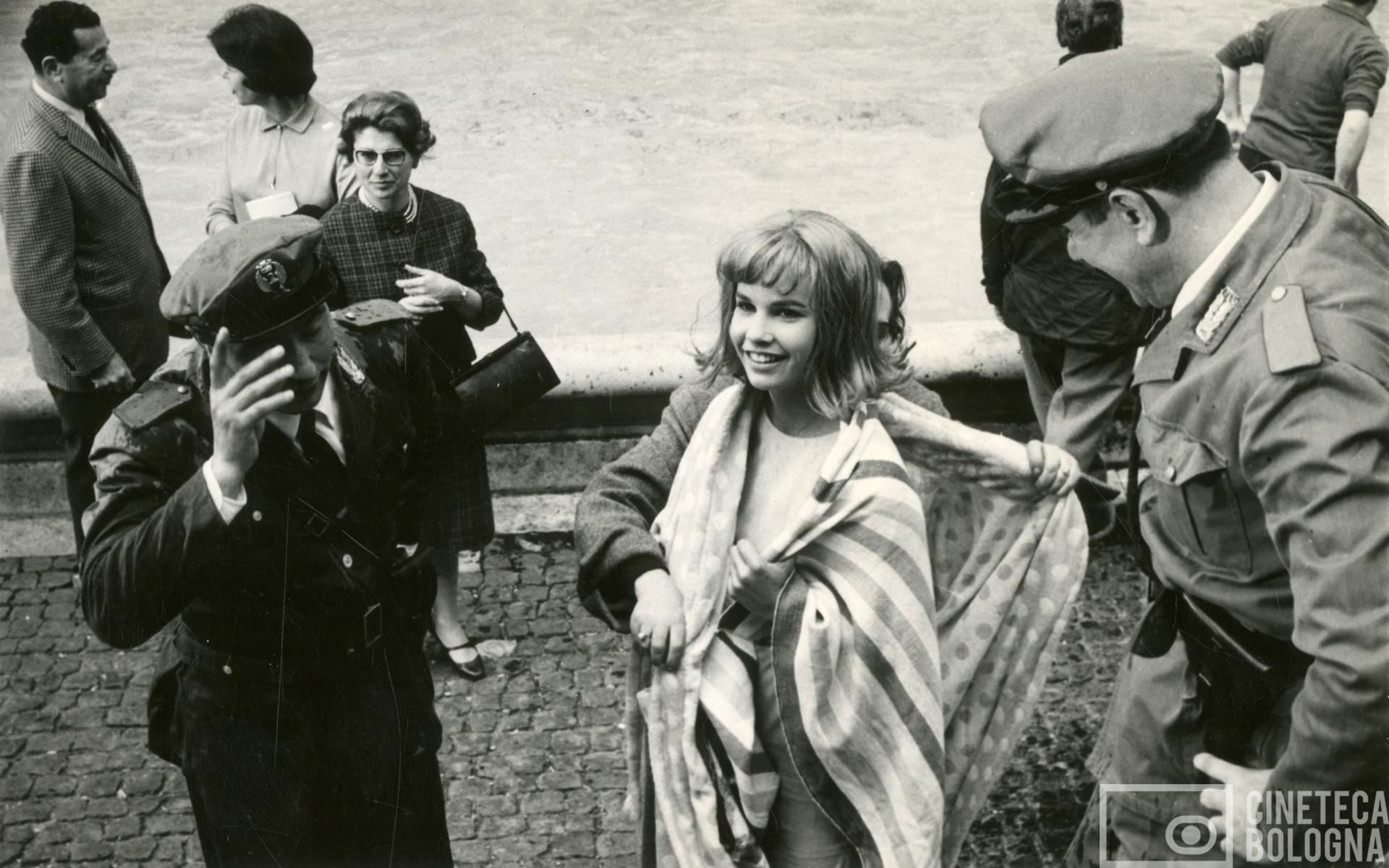 Roma. Mara Blasetti e Cindy Carol alla Fontana di Trevi durante le riprese del film Gidget Goes To Rome