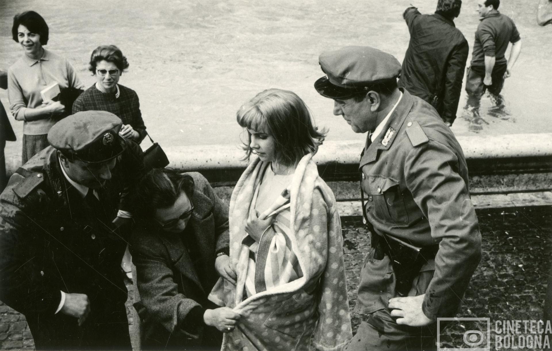 Roma. Mara Blasetti e Cindy Carol alla Fontana di Trevi durante le riprese di una scena del film Gidget Goes To Rome