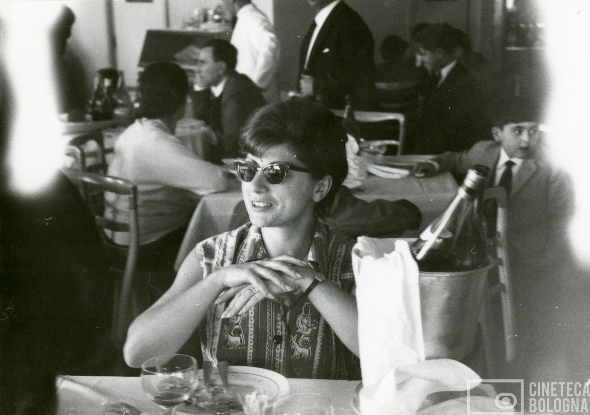 Salerno. Mara Blasetti al Ristorante Baia durante una pausa delle riprese del film The Victors