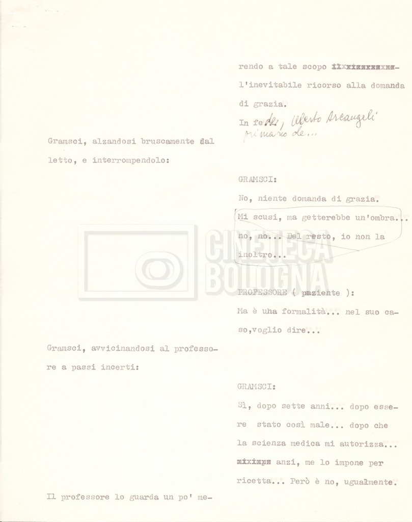 “Antonio Gramsci; dialoghi definitivi per il doppiaggio e per il ministero”