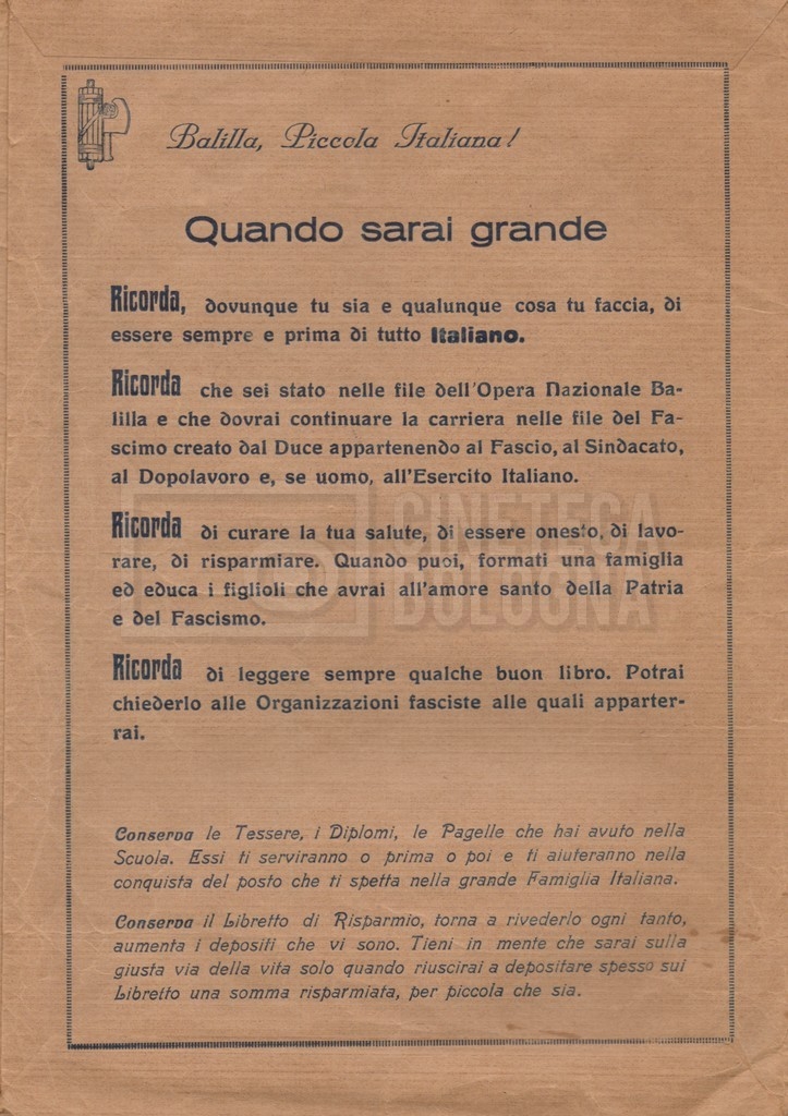 - Tre tessere dell''Opera nazionale balilla' (1934, 1935, 1937);