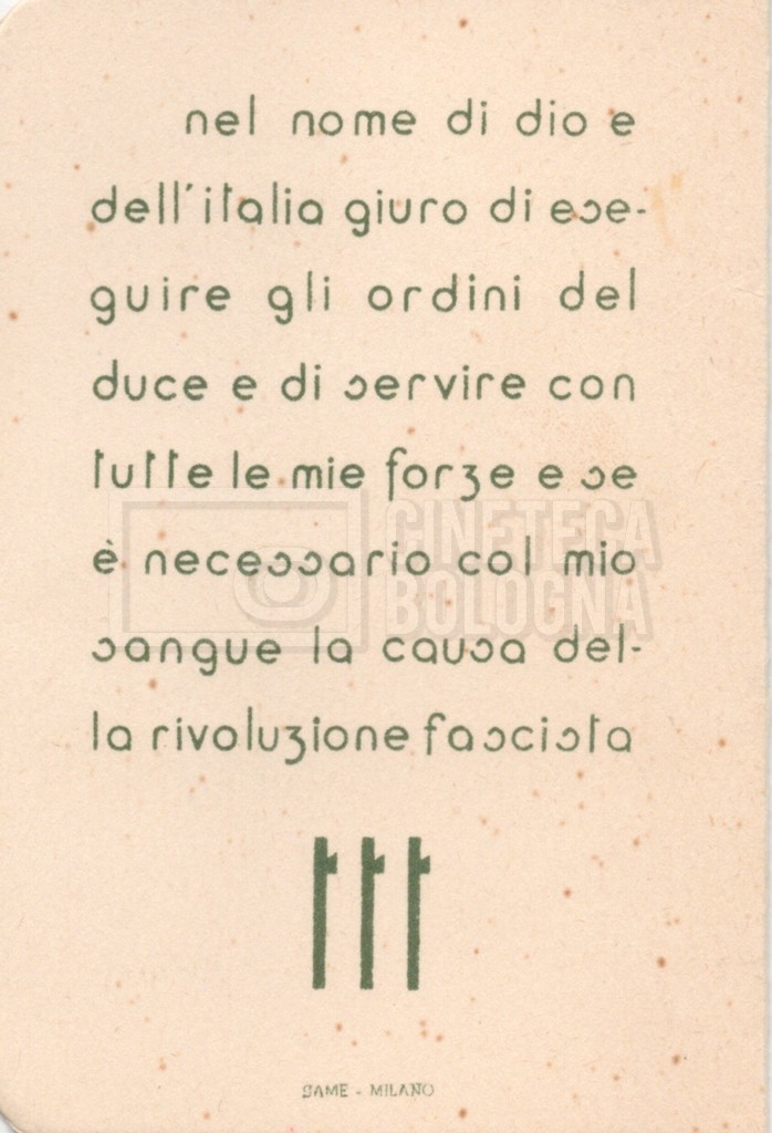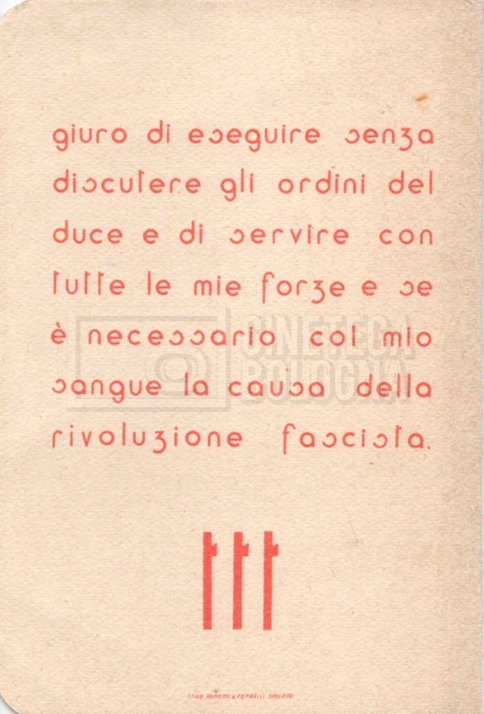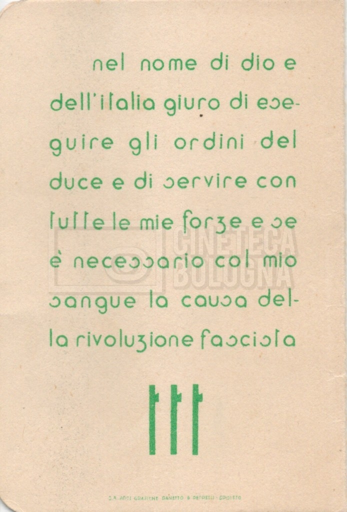 – Una tessera della ‘Gioventù italiana del littorio’ (1939);