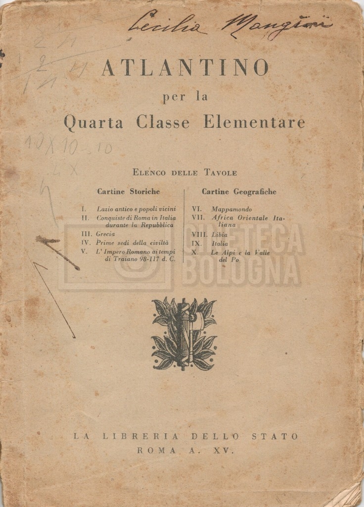 – Atlantino per la quarta classe elementare, Roma, Libreria dello Stato, 1936-1937;