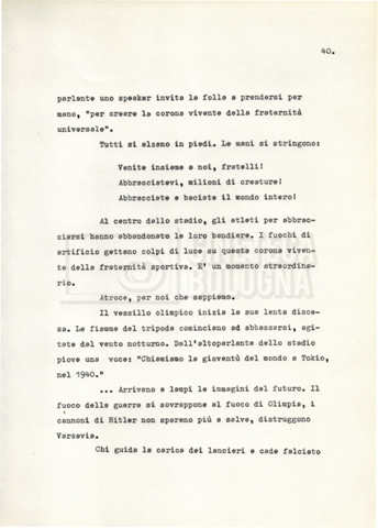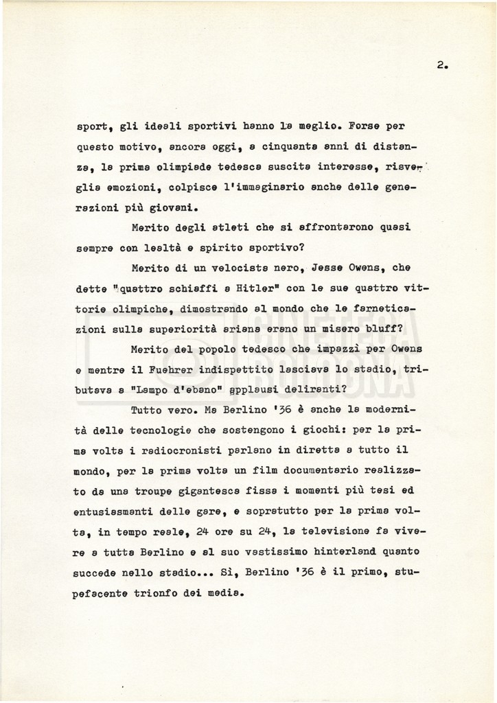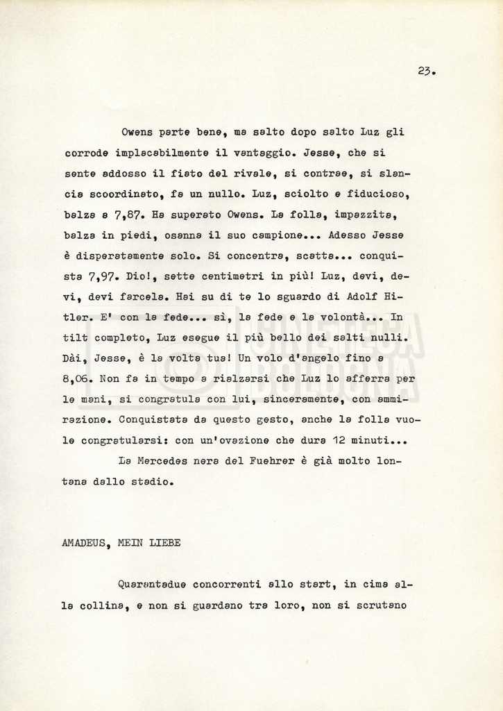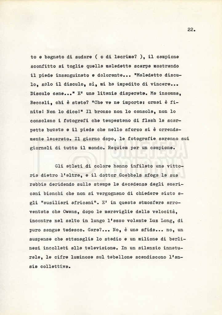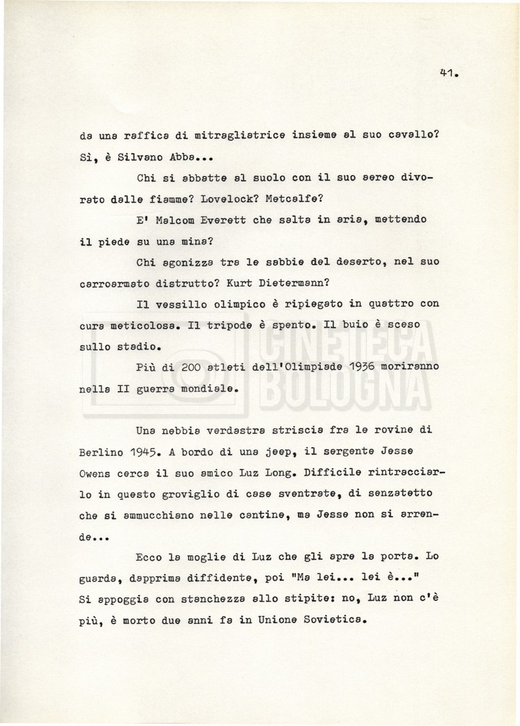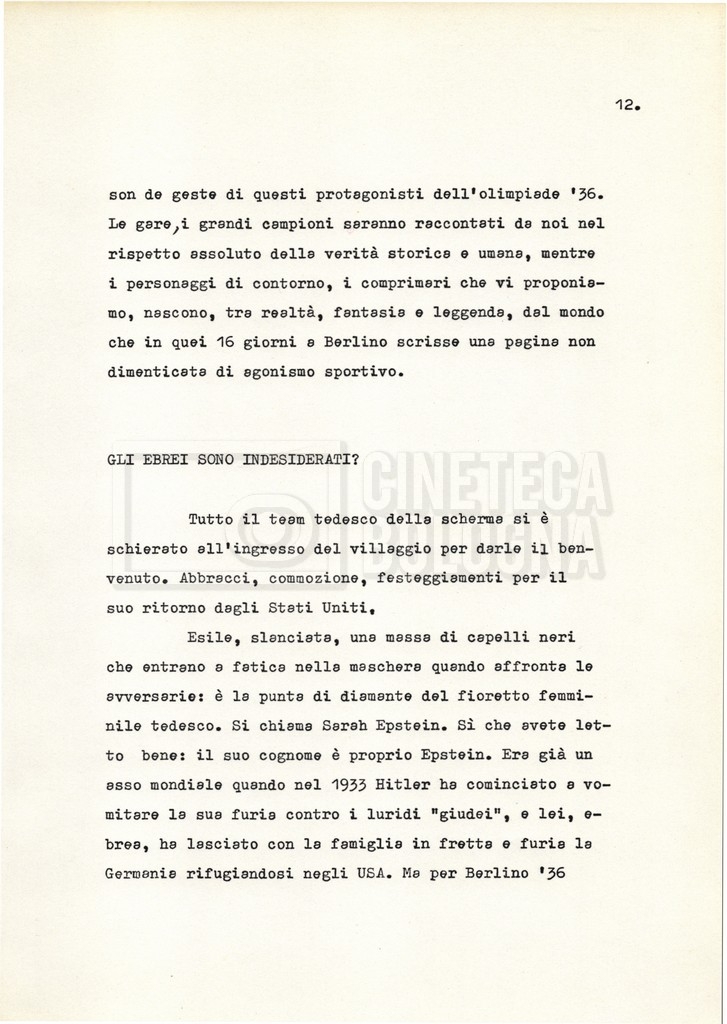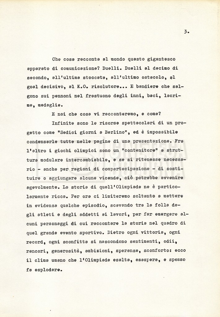 Nella storica cornice della XI Olimpiade, organizzata a Berlino nel 1936 sotto l’egida del regime nazista, si raccontano le vicende e i drammi individuali di alcuni atleti e addetti ai lavori. Evitando una forte impostazione documentaria e uno sguardo storiografico sull’evento, il soggetto mira a ricostruire, attraverso singoli episodi, il clima umano “dietro ogni vittoria, ogni record, ogni sconfitta”.