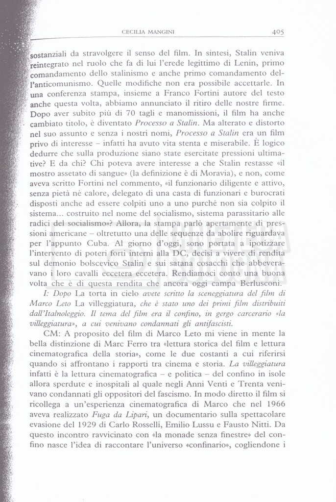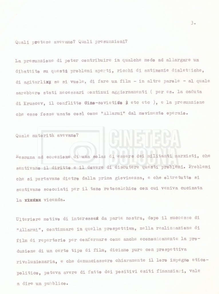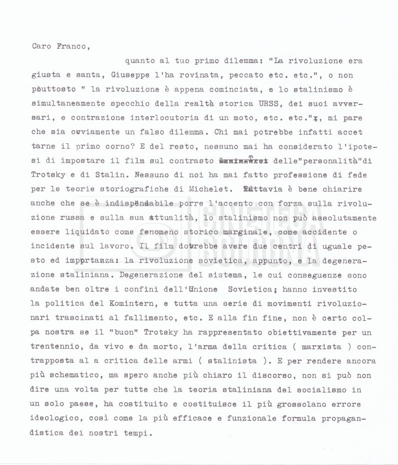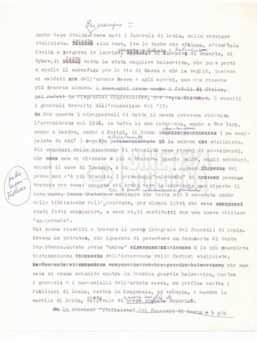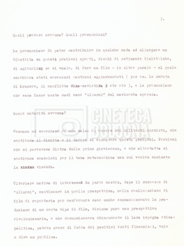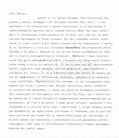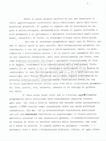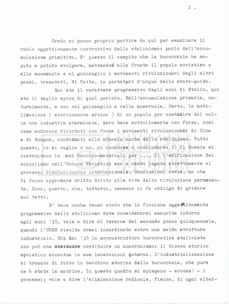 – Testo datt. dal titolo “Perché Stalin?” di Cecilia Mangini e Lino Del Fra, probabilmente preparati per la stampa, a cui è allegato un ulteriore doc. datt. dal titolo “Difficoltà nel reperimento del materiale”;