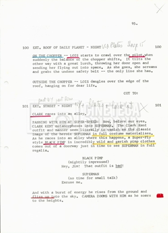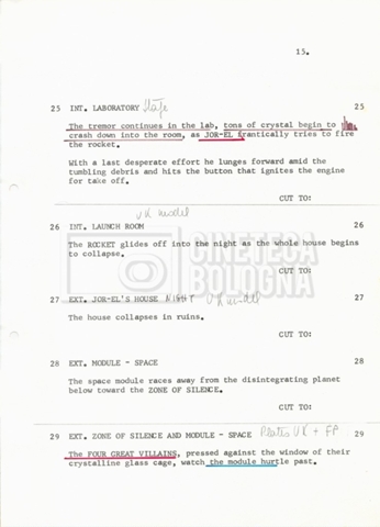 Torna alla banca dati “Superman (Part I)” Documento storico Fondo Mara Blasetti / “Film preparati ma non girati” / Superman Ambiti e contenuto Gli autori sono David Newman, Leslie Newman e Robert Benton. Informazioni archivistiche Cronologia: luglio 1976 Numero di ordinamento definitivo: 2.9.3 Numero di ordinamento provvisorio: M4.1 Descrizione fisica: volume Immagini digitalizzate Documenti correlati Vai alla banca dati DOCUMENTO STORICO “Cast e unit lists” DOCUMENTO STORICO Materiale preparatorio e corrispondenza DOCUMENTO STORICO “Superman (Part II)”