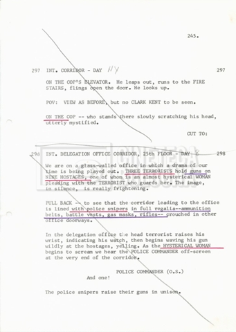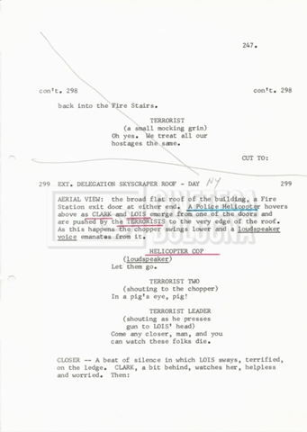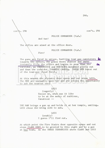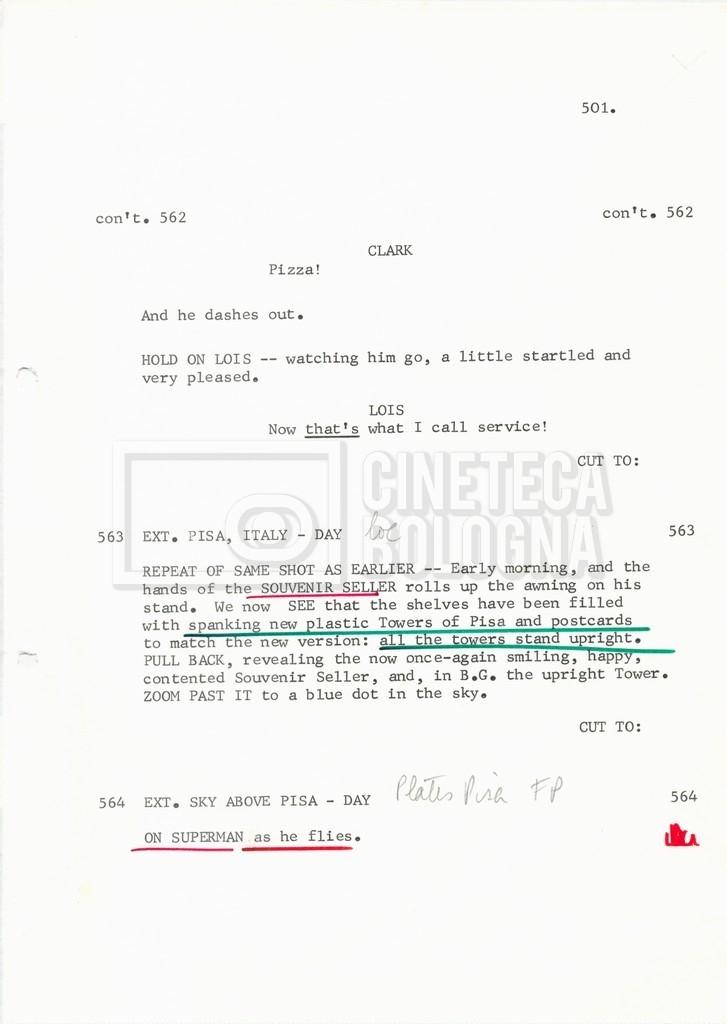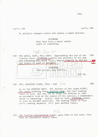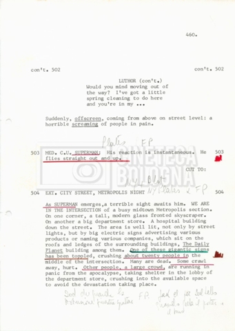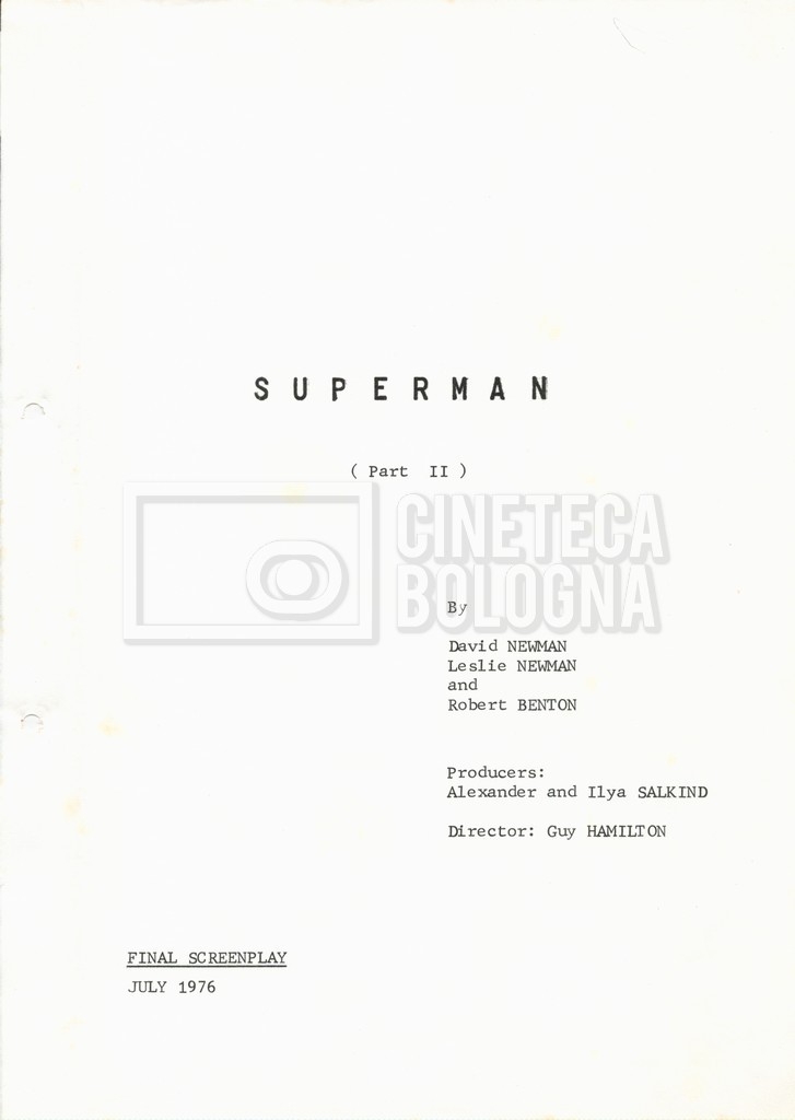 Torna alla banca dati “Superman (Part II)” Documento storico Fondo Mara Blasetti / “Film preparati ma non girati” / Superman Ambiti e contenuto Gli autori sono David Newman, Leslie Newman e Robert Benton. Informazioni archivistiche Cronologia: luglio 1976 Numero di ordinamento definitivo: 2.9.4 Numero di ordinamento provvisorio: M4.2 Descrizione fisica: volume Immagini digitalizzate Documenti correlati Vai alla banca dati DOCUMENTO STORICO “Cast e unit lists” DOCUMENTO STORICO Materiale preparatorio e corrispondenza DOCUMENTO STORICO “Superman (Part I)”