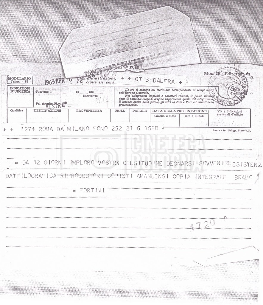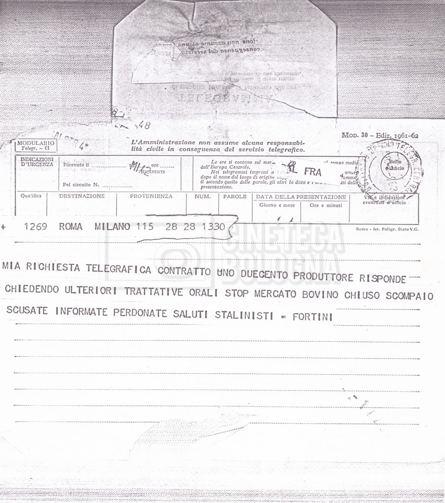 “Telegrammi di Fortini (gli originali a Siena). L’originale è stato ritrovato poco tempo fa dentro un libro”
