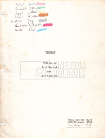 Torna alla banca dati “Tempest” Documento storico Fondo Mara Blasetti / “Film Mara girati” / Tempest Ambiti e contenuto Gli autori sono Paul Mazursky e Leon Capetanos. Informazioni archivistiche Cronologia: 03 agosto 1981 Numero di ordinamento definitivo: 1.25.5 Numero di ordinamento provvisorio: M3.3 Descrizione fisica: volume Immagini digitalizzate Informazioni sul film titolo originale: Tempest altri titoli: La tempesta regia: Mazursky, Paul anno: 1982 paese di produzione: Stati Uniti lingua principale: inglese altre lingue: greca Documenti correlati Vai alla banca dati DOCUMENTO STORICO “Cast e unit lists” DOCUMENTO STORICO “Pratiche ministeriali per poter girare un film in Italia” DOCUMENTO STORICO Gestione delle riprese, documentazione contabile e corrispondenza DOCUMENTO STORICO Corrispondenza, contratti e appunti